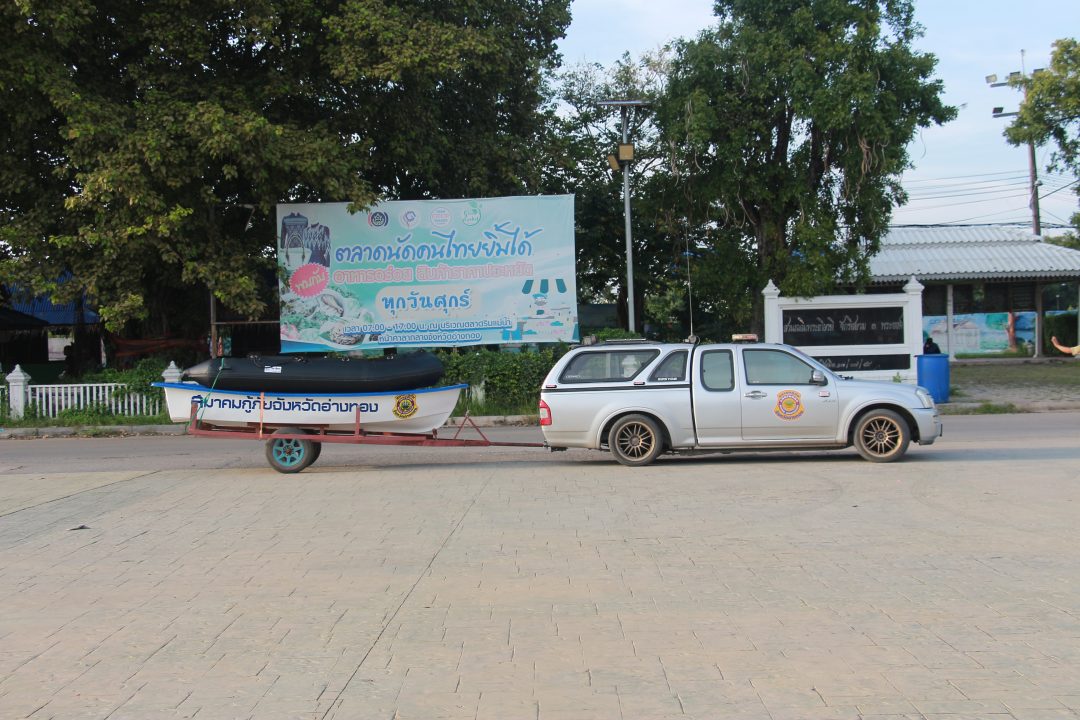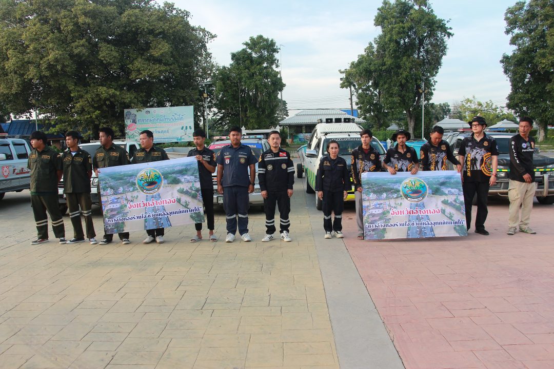 บริเวณหน้าพระบรมราชานุเสาวรีย์ รัชกาลที่ 5 ศาลากลางจังหวัดอ่างทอง นาย นที มนตริวัติ ผู้ว่าราชการจังหวัดอ่างทอง พร้อมด้วย นาย สมศักดิ์ ปริศนานันทกุล อดีตรัฐมนตรีว่าการกระทรวงเกษตรและสหกรณ์ นาย สุรเชษ นิ่มกุล นายกองค์การบริหารส่วนจังหวัดอ่างทอง และหัวหน้าส่วนราชการ ร่วมปล่อยขบวนทีมกู้ภัยจากจังหวัดอ่างทอง จำนวน 2 ทีม เพื่อไปช่วยเหลือผู้ประสบอุทกภัยในจังหวัดสตูล พร้อมร่วมมอบเงินเพื่อสนับสนุนการเดินทางและการปฏิบัติภารกิจ