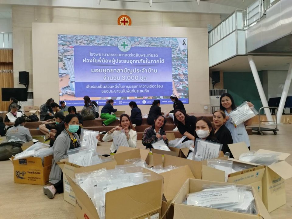 โรงพยาบาลธรรมศาสตร์เฉลิมพระเกียรติ ตำบล คลองหนึ่ง อำเภอคลองหลวง ปทุมธานี ได้แสดงความห่วงใยต่อพี่น้องประชาชนที่ประสบอุทกภัยในพื้นที่ภาคใต้ โดยมีเจ้าหน้าที่โรงพยาบาลระดมกำลังจัดเตรียมและส่งมอบ ชุดยาสามัญประจำบ้าน จำนวน 3,000 ชุด