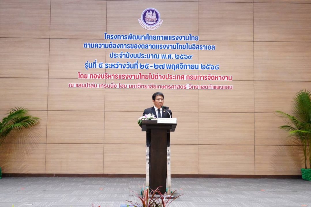 จากการที่รัฐบาลไทยและรัฐบาลแห่งรัฐอิสราเอลได้ลงนามความตกลงว่าด้วยการจ้างแรงงานไทยไปทำงานภาคเกษตรในรัฐอิสราเอล เมื่อวันที่ ๑๓ กรกฎาคม ๒๕๖3 ภายใต้กรอบความร่วมมือไทย-อิสราเอลเพื่อการจัดหางานหรือระบบ TIC ปัจจุบันได้มีแรงงานไทยเดินทางไปทำงานแล้วกว่า 80,000คน และอยู่ระหว่างรอเดินทางในช่วงวันที่ 25 พฤศจิกายน -24 ธันวาคม 2568 อีกจำนวน 1,215 คนการฝึกอบรมครั้งนี้ จัดขึ้นเพื่อพัฒนาทักษะที่จำเป็นและเตรียมความพร้อมก่อนเดินทางไปทำงานในรัฐอิสราเอล โดยมุ่งเน้นทักษะปฏิบัติจริงด้านการทำงานภาคเกษตร การใช้เครื่องมือพื้นฐาน เทคนิคการเกษตรสมัยใหม่ การปลูกพืช การดูแลความปลอดภัย สุขอนามัย และการปรับตัวในการใช้ชีวิตร่วมกันในต่างประเทศ รวมทั้งการได้ความรู้ด้านภาษาฮิบรูขั้นพื้นฐานสำหรับใช้ในชีวิตประจำวัน ยาเสพติด กฎหมายแรงงาน ระเบียบ วินัย และทัศนคติที่เหมาะสมต่อการทำงาน โดยมีกำหนดการฝึกอบรมเป็นเวลา 3 วัน ตั้งแต่วันที่ 25 – 27 พฤศจิกายน 2568 มีผู้เข้ารับการฝึกอบรมทั้งสิ้นจำนวน 426 คน