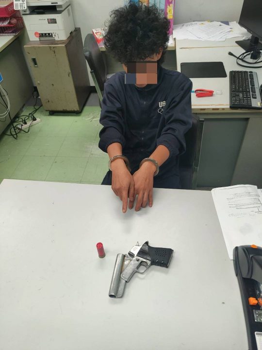 ขณะเจ้าหน้าที่ตรวจผ่านพื้นที่ พบกลุ่มวัยรุ่นยืนรวมกลุ่มกันริมถนน และสังเกตเห็นชายหนึ่งรายมีท่าทางตกใจเมื่อเห็นตำรวจ จึงขอทำการตรวจค้น โดยเจ้าหน้าที่ได้แสดงความบริสุทธิ์ใจก่อนเข้าปฏิบัติจากการตรวจค้นพบของกลาง ได้แก่ อาวุธปืนสั้นไทยประดิษฐ์ 1 กระบอก เครื่องกระสุนปืนลูกซองเบอร์ 12 จำนวน 1 นัด บรรจุอยู่ในรังเพลิงพร้อมยิง ซึ่งถูกซุกซ่อนในซองปืนสีดำเหน็บอยู่บริเวณเอวซ้ายของผู้ต้องหา ซึ่งนายรัฐภูมิ (ไปป์) อายุ 20 ปี ให้การรับสารภาพว่าปืนและกระสุนดังกล่าวเป็นของตนจริง เจ้าหน้าที่จึงแจ้งข้อกล่าวหา พร้อมสิทธิทางกฎหมาย ก่อนควบคุมตัวส่งพนักงานสอบสวนเพื่อดำเนินคดีตามกฎหมาย