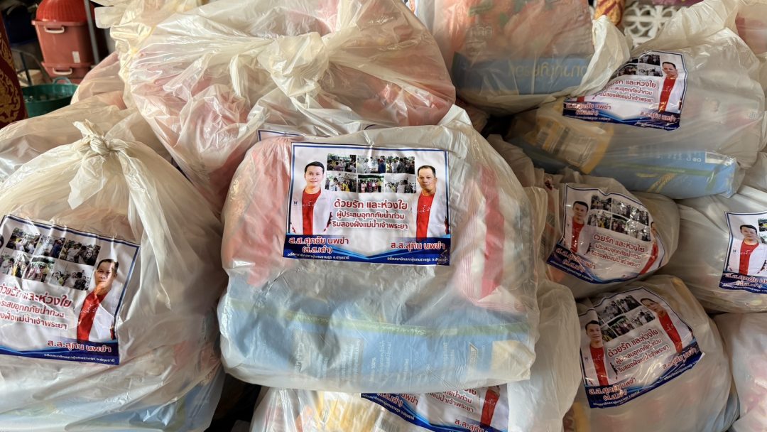นายศุภชัย นพขำ อดีต ส.ส. ปทุมธานี เปิดเผยว่า แม้ระดับน้ำจะลดลงเยอะ แต่เนื่องจากแม่น้ำเจ้าพระยาไหลผ่ากลาง อ.สามโคก ทำให้น้ำยังคงมีการขึ้นลง และ บ้านเรือนริมแม่น้ำยังคงมีน้ำท่วมคาอยู่ถึง 1 เมตร โดยเฉพาะในช่วงสายที่ระดับน้ำจะเริ่มสูงขึ้น ตั้งแต่เช้าได้ตนได้แจกจ่ายมา 4 จุดคือ ต.ท้ายเกาะ ต.บางกระบือ ต.คลองควาย ต.บางเตย 1,100 กว่าชุด และช่วงบ่านนี้แจกอีก 3 จุดคือ ต.สามโคก ต.กระแชง ต.บางโพธิ์เหนือ ของ อ.สามโคก เมื่อวานตนแจก อ.สามโคก ฝั่งตะวันออก วันนี้มาแจกให้กับ อ.สามโคก ฝั่งตะวันตก ซึ่ง อ.สามโคกไปชน อ.เมืองปทุมธานี แม่น้ำเจ้าพระยามันผ่ากลาง ทั้งสองฝั่งริมแม่น้ำเจ้าพระยา ถ้าน้ำมันขึ้นมายังไงก็ท่วม ขณะนี้ระดับน้ำก็ลดลงแต่ก็ยังขึ้นปกติ บ้านริมแม่น้ำยังมีน้ำท่วมคาอยู่ 1 เมตร ชาวบ้านได้ติดต่อมาทางตนว่าไม่มีหน่วยงานเข้ามาบรรเทาทุกข์เลย ตนเลยติดต่อทางท้องถิ่นเข้ามาดูแลในจุดนี้ วันนี้ที่นำถุงยังชีพมาช่วย 2,000 กว่าคาเรือน รวมทั้ง อ.สามโคก 2 วันนำถุงยังชีพมาช่วยทั้งหมดร่วม 3,000 กว่าครัวเรือน