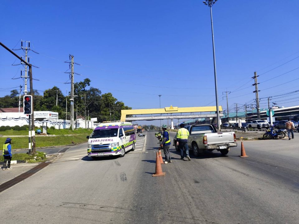 จากการสอบถามผู้ที่เห็นเหตุการณ์บริเวณดังกล่าวให้ข้อมูลว่า รถกระบะได้ขับมาจากเส้นทางอำเภองาวเพื่อจะมุ่งหน้าไปยังตัวเมืองพะเยาและเมื่อมาถึงบริเวณสี่แยกหน้ามหาลัยพะเยาได้ขับรถด้วยความเร็วและฝ่าไฟแดงจนเป็นเหตุทำให้ชนเข้ากับรถจักรยานยนต์ที่กำลังข้ามแยกอย่างแรงจึงทำให้ผู้ขับขี่รถจักรยานยนต์กระเด็นตกกระแทกพื้นได้รับบาดเจ็บสาหัส หลังเกิดเหตุเจ้าหน้าที่จึงทำการตรวจสอบจุดเกิดเหตุ และเก็บรวบรวมพยานหลักฐาน พร้อมลงบันทึกเพื่อดำเนินคดีตามกฎหมาย เบื้องต้นพิจารณาแจ้งข้อหาขับรถโดยประมาทเป็นเหตุให้ผู้อื่นได้รับอันตรายสาหัส