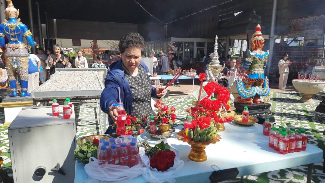 นางน้อย (ขอสงวนนามสกุล)เดินทางมาจากย่านวัดหนองใหญ่ สายไหม นำกุหลาบ 99 ดอกพร้อมด้วยเครื่องเซ่นไหว้มาแก้บนท้าวเวสสุวรรณหลังธุรกิจค้าขายประสบความสำเร็จนางน้อยกล่าวว่าตนเองนั้นเปิดร้านขายอาหารข้าวราดแกงอยู่แถววัดหนองใหญ่ได้เดินทางมาขอพรกบท้าวเวสสุวรรณไว้ว่าขอให้กิจการค้าขายเป็นไปได้ด้วยดี ส่วนเรื่องโชคลาภนั้นตนเองก็มีบ้างแต่ตนจะเน้นในเรื่องการค้าขายมากกว่า และวันนี้กิจการของตนดีขึ้นแล้วจึงเดินทางมาแก้บนดังกล่าว และก่อนกลับได้จุดธูปเสี่ยงทายได้เลข 17 นำกลับไปลุ้นโชคอีกด้วย
