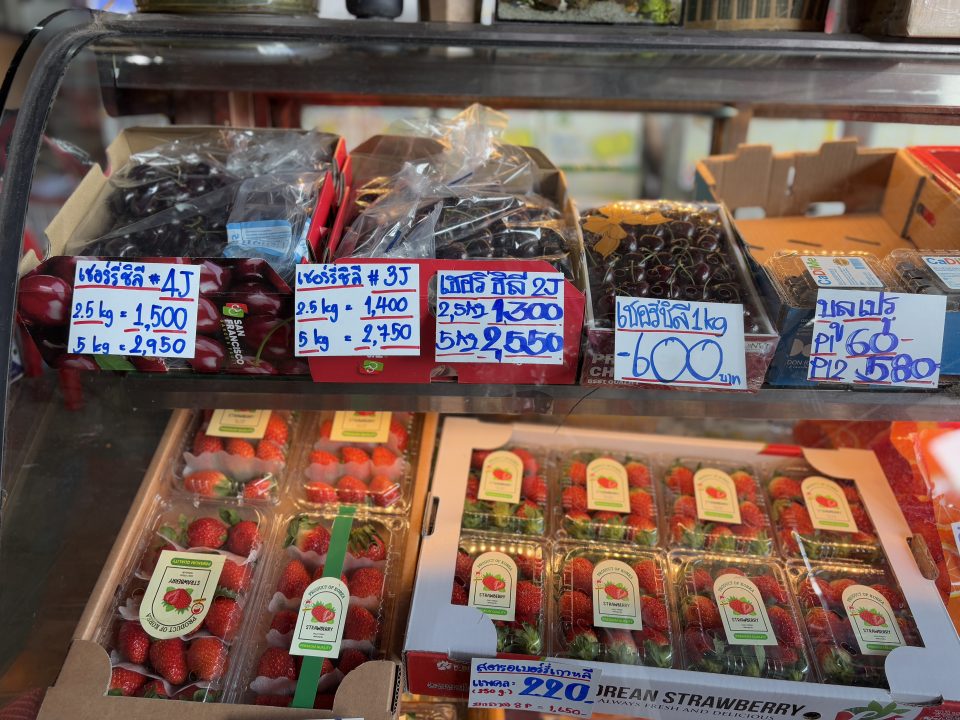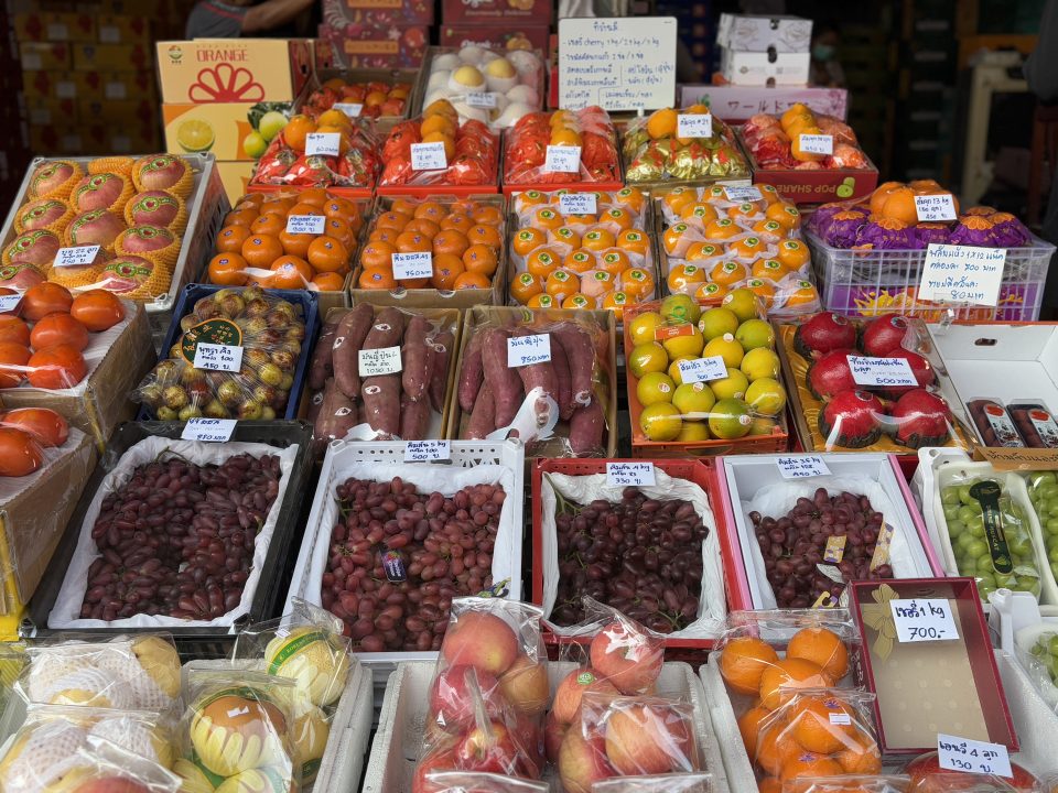 ไฮไลท์ “ตลาดผลไม้ต่างประเทศ” สดเหมือนพึ่งลงจากเครื่อง รวบรวมผลไม้จากหลายประเทศ หลากหลายเกรดให้เลือกตามงบประมาณ มีทั้ง “ขายส่งยกลัง” และ “ขายปลีก” พร้อมห้องเย็นควบคุมคุณภาพ ตัวอย่างราคาน่าช้อป ได้แก่