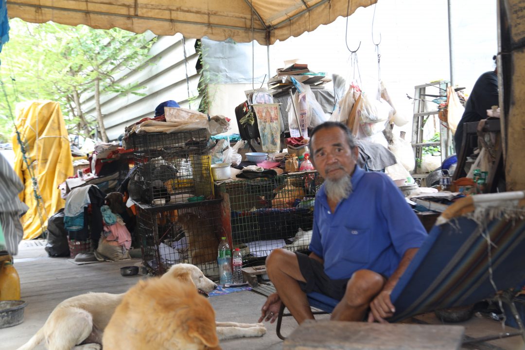 โดยคุณตาสุรชัย ประยูรสมบัติ อายุ 73 ปีวันนี้ฝนตกทั้งวันจนสาดเข้ามาในเต้นที่ใช้หลับนอนตนต้องนำถังมาลองน้ำเพื่อไม่ให้เข้าในเต้นไม่งั้นจะนอนไม่ได้ ซึ่งกิจวัตรประจําวันของตาเช้าต้องวิ่งออกไปขอเข้าห้องน้ำบ้านคนรู้จักเนื่องจากไม่มีน้ำใช้อีกทั้งไฟฟ้าก็ไม่มีต้องหุงข้าวด้วยฟืนแทน ตอนนี้ลำบากมากไหนจะสุนัขและแมวจำนวน 15 ตัวที่ต้องดูแลอีกเพราะพวกหมาแมวไม่มีที่อยู่ต้องนำกรงมาเป็นบ้านให้เขาและนำผ้ามาคลุมกันแดดกันฝนให้แทน ซึ่งหลังจากที่เป็นข่าวออกไปนั้นทางเทศบาลเมืองคลองหลวงได้เข้ามาดูแลพร้อมรับปากว่าภายในอาทิตย์หน้าจะนำรถแบคโฮนำมาขนย้ายต้นไม้ที่ทับบ้านพังพร้อมซ่อมแซมให้ใหม่ตนจึงขอขอบคุณณที่นี้ด้วย
