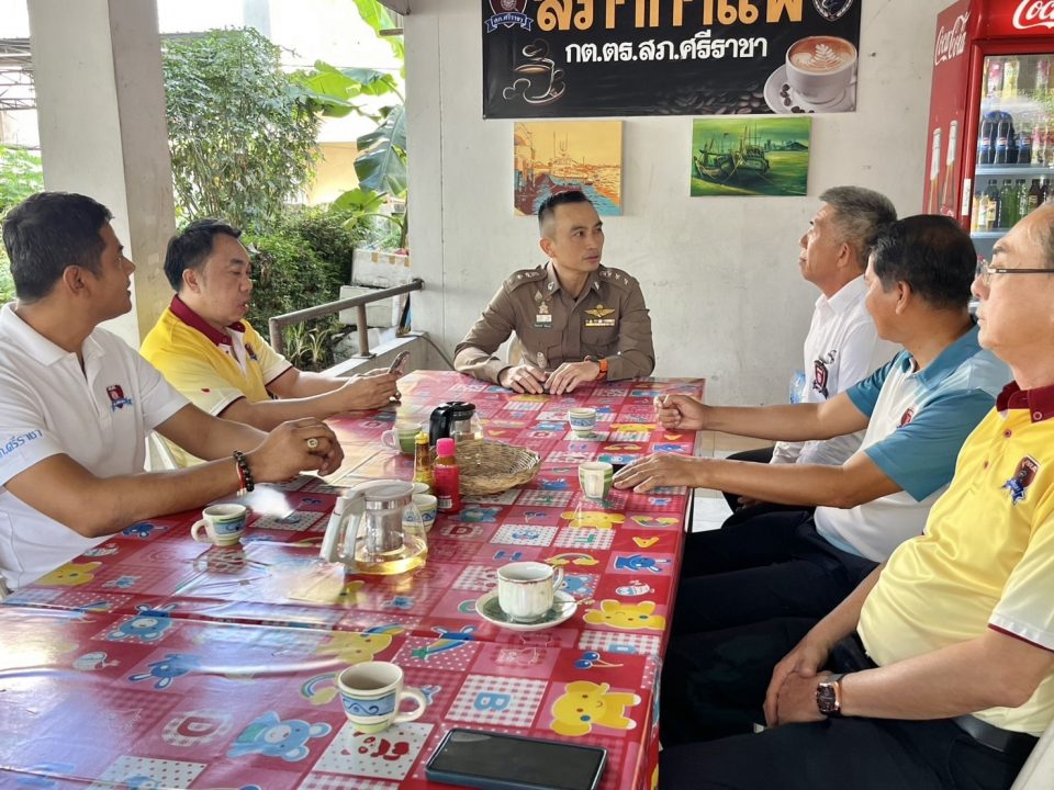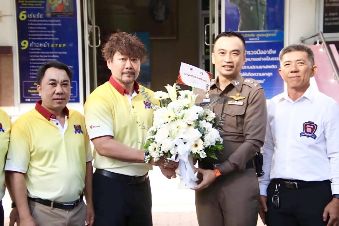 ที่ สภ.ศรีราชา จ.ชลบุรี นาย มาซาฮีโร่ อาเบ MR. MASAHIRO ABE ที่ปรึกษาฝ่ายญี่ปุ่น กต.ตร.สภ.ศรีราชา พร้อมด้วย กต.ตร.สภ.ศรีราชา ให้การต้อนรับ และ มอบกระเช้าแสดงความยินดี