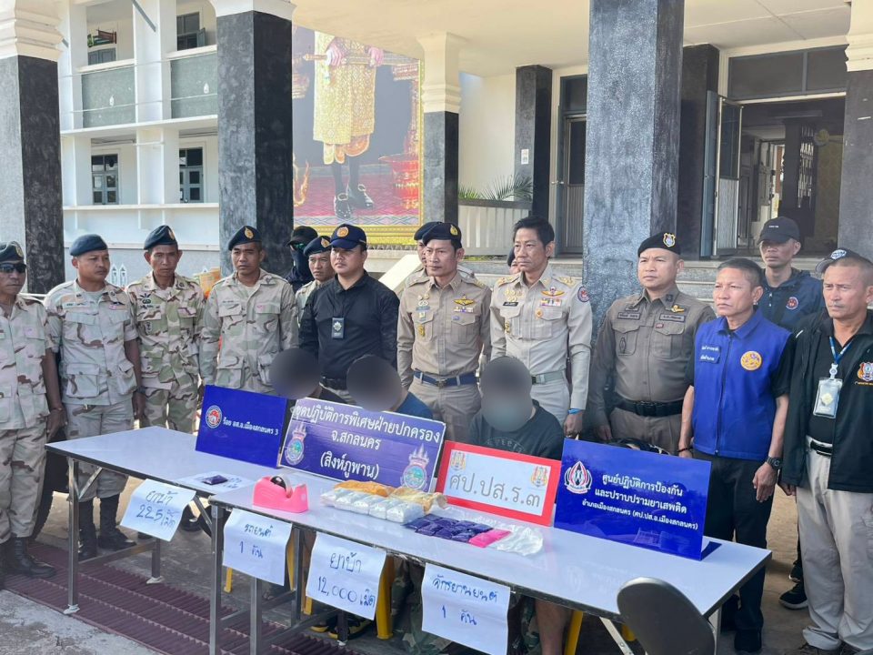 ที่หน้าศาลากลางจังหวัดสกลนคร นายศราวุธ สุวรรณจูฑะ รองผู้ว่าราชการจังหวัดสกลนคร (ความมั่นคง) นายกฤติคุณ แก้วคุณนอก ป้องกันจังหวัดสกลนคร และ นายนิพนธ์ การชาคำ ปลัดอำเภอหัวหน้ากลุ่มงานบริหารงานปกครอง อ.เมืองสกลนคร พร้อม จนท.ฝ่ายปกครอง,ทหาร,ตำรวจ ร่ว มกันแถลงข่าวจับกุม นายหนึ่ง ลาเต๊ะ อายุ 19 ปีและนายแม็ก เนาว์สีสอน อายุ 21 ปี พร้อมของกลางยาบ้า 225 เม็ด หลังลงพื้นที่บ้านหนองไผ่ ต.ดงมะไฟ อ.เมือง ตามที่รับแจ้งจากราษฎรในพื้นที่