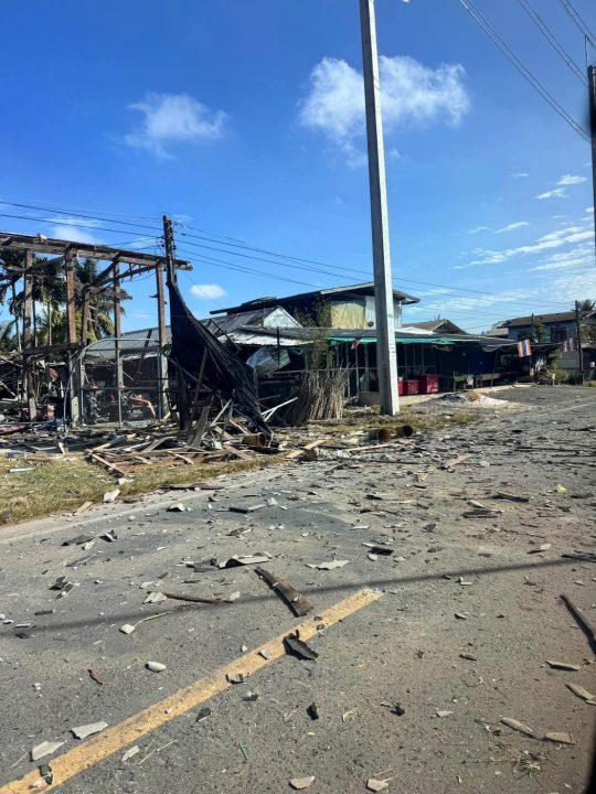 นอกจากนี้ แรงระเบิดจากลูก BM-21 ยังทำให้เกิดเพลิงไหม้บ้านเรือนประชาชนซึ่งเป็นบ้านไม้ 2 ชั้น จำนวน 2 หลัง บริเวณทางขึ้นวัดภูสามสวรรค์ ตำบลเสาธงชัย ได้แก่ บ้านของ นายจันดา สุทธิสน และบ้านของ นายจรัส ชินโสภา ได้รับความเสียหายอย่างหนัก