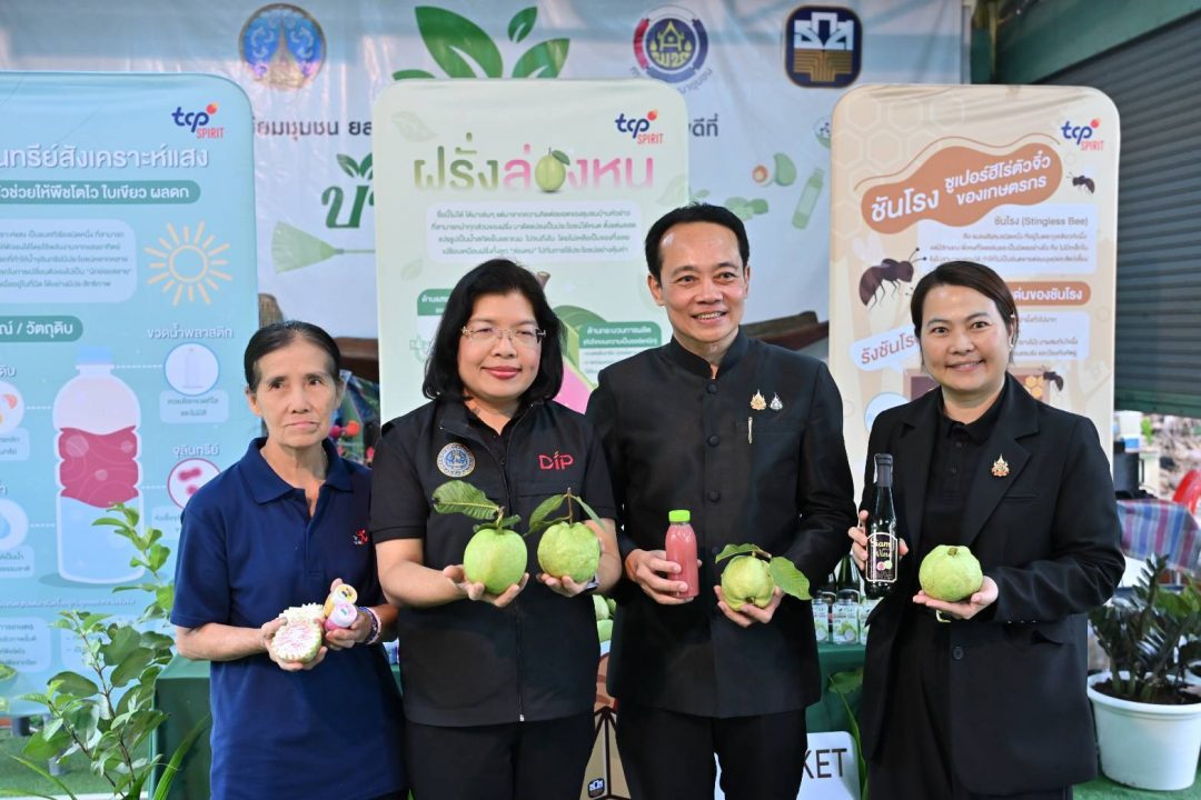 นอกจากนี้ ผู้ประกอบการยังได้ต่อยอดแปรรูปฝรั่งสามพรานเป็นผลิตภัณฑ์ต่างๆ เพื่อเพิ่มมูลค่าและใช้ประโยชน์จากผลผลิตให้ครบทุกส่วน อาทิ น้ำฝรั่งสกัดเย็น ฝรั่งแผ่นอบกรอบ ชาใบฝรั่ง เป็นต้น ซึ่งล้วนมีรสชาติอร่อยและได้ประโยชน์จากฝรั่งแท้ๆ รวมทั้งพัฒนาสวนปลูกฝรั่งสามพรานให้เป็นศูนย์เรียนรู้และสถานที่ท่องเที่ยว เพื่อดึงดูดนักท่องเที่ยวให้มาเยี่ยมชมและได้รู้จักฝรั่งสามพรานเพิ่มมากขึ้น นอกจากฝรั่งสามพรานแล้ว จังหวัดนครปฐม ยังมีสินค้า GI อีก 3 รายการ ได้แก่ ส้มโอนครชัยศรี มะพร้าวน้ำหอมสามพราน และเนื้อโคขุนกำแพงแสน ซึ่งล้วนเป็นสินค้าสำคัญที่ช่วยขับเคลื่อนเศรษฐกิจของจังหวัดนครปฐม โดยสินค้า GI ทั้ง 4 รายการสามารถสร้างรายได้เข้าสู่ชุมชนรวมกว่า 1,040 ล้านบาทต่อปี ในโอกาสนี้ อธิบดีกรมทรัพย์สินทางปัญญาได้พบหารือเกษตรกรผู้ประกอบการ หน่วยงานท้องถิ่นที่เกี่ยวข้อง เกี่ยวกับแนวทางส่งเสริมสินค้า GI ของจังหวัดนครปฐม โดยระบุว่าในปี 2569 กรมมุ่งเน้นการยกระดับมาตรฐานสินค้าและสร้างการยอมรับในวงกว้าง เพื่อเพิ่มศักยภาพในการแข่งขันทั้งในประเทศและต่างประเทศ โดยมีแนวทางสำคัญ 5 ด้าน ได้แก่ (1) พัฒนาศักยภาพผู้ผลิตสินค้า GI โดยส่งเสริมองค์ความรู้ด้านการผลิต การควบคุมคุณภาพ และการใช้เครื่องหมาย GI อย่างถูกต้อง ตลอดจนเสริมทักษะด้านการบริหารจัดการ การตลาดออนไลน์ การสร้างแบรนด์ การจัดทำเรื่องราวผลิตภัณฑ์ (Product Story) และการใช้กลยุทธ์ทรัพย์สินทางปัญญาเพื่อสร้างความได้เปรียบในการแข่งขัน (2) เดินหน้าประชาสัมพันธ์และส่งเสริมภาพลักษณ์สินค้า GI ไทย โดยใช้สื่อหลากหลายช่องทางทั้งออนไลน์และออฟไลน์ เพื่อสร้างการรับรู้ จุดเด่น และอัตลักษณ์ของสินค้า GI แก่กลุ่มเป้าหมายในวงกว้าง (3) สนับสนุนการพัฒนาบรรจุภัณฑ์ การแปรรูป และการออกแบบผลิตภัณฑ์ใหม่ๆ โดยยังคงเอกลักษณ์ของสินค้า GI เพื่อเพิ่มความน่าสนใจและตอบสนองความต้องการของตลาดสมัยใหม่ (4) ขยายช่องทางการตลาดในประเทศและต่างประเทศ โดยประสานความร่วมมือกับห้างค้าปลีก ตลาดพรีเมียม แพลตฟอร์มออนไลน์ และเครือข่ายพันธมิตรในต่างประเทศ เพื่อเพิ่มโอกาสทางการค้าและขยายตลาดใหม่ และ (5) บูรณาการการทำงานร่วมกับหน่วยงานภายนอกและระดับนานาชาติ เพื่อสร้างการยอมรับและผลักดันสินค้า GI ไทยเข้าสู่ตลาดสากลอย่างมีประสิทธิภาพ และสร้างรายได้กลับสู่ชุมชนอย่างยั่งยืนต่อไป
