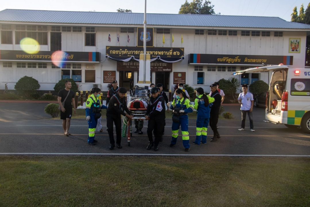หน่วยเฉพาะกิจกรมทหารพรานที่ 36 อำเภอแม่สะเรียง จังหวัดแม่ฮ่องสอน จัดนายสิบพยาบาล พร้อมกำลังพลชุดบรรเทาสาธารณภัย อำนวยความสะดวก และให้ความช่วยเหลือส่งต่อผู้ป่วยทางอากาศยาน โดย ชุดปฏิบัติการบินทหารบกกองกำลังผาเมือง จัด ฮ.ท. 212 พร้อมทีมแพทย์ฉุกเฉิน Sky Doctor จากโรงพยาบาลมหาราชนครเชียงใหม่ เพื่อทำการช่วยเหลือเคลื่อนย้ายผู้ป่วยฉุกเฉินจากโรงพยาบาลแม่สะเรียง ต.แม่สะเรียง อ.แม่สะเรียง จ.แม่ฮ่องสอน จำนวน 1 ราย เป็นชาย อายุ 25 ปี ได้รับบาดเจ็บจากไม้ทับศรีษะ มีอาการไม่รู้สึกตัว จาก สนาม ฮ. หน่วยเฉพาะกิจกรมทหารพรานที่ 36(ค่ายเทพสิงห์) ต.บ้านกาศ อ.แม่สะเรียง จ.แม่ฮ่องสอน เพื่อส่งตัวเข้ารับการรักษาต่อ ณ โรงพยาบาลนครพิงค์ ต.ดอนแก้ว อ.แม่ริม จ.เชียงใหม่