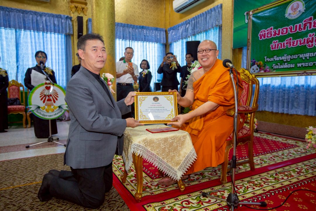 ที่ หอปริยัติธรรม (โรงเรียนผู้สูงอายุสุขภาพดีนครปฐม) วัดไผ่ล้อม พระอารามหลวง จังหวัดนครปฐม นายจิรวัฒน์ สะสมทรัพย์ นายกองค์การบริหารส่วนจังหวัดนครปฐม เป็นประธานในพิธีมอบเกียรติบัตรแก่นักเรียน โรงเรียนผู้สูงอายุสุขภาพดีนครปฐม รุ่นที่ 8 ประจำปี พ.ศ.2568 จำนวน 50 คน โดยมีพระครูปลัดสิทธิวัฒน์ (หลวงพี่น้ำฝน) ผู้รักษาการแทนเจ้าอาวาสฯ เป็นประธานฝ่ายสงฆ์ ร่วมด้วยหัวหน้าส่วนราชการที่เกี่ยวข้องเข้าร่วมในพิธีโดยพร้อมเพรียง โดยในพิธีได้ได้เริ่มโดยการจัดให้มีพิธีไหว้ครู ซึ่งเป็นการกล่างคำบูชาครู แด่ หลวงพี่น้ำฝน ผู้ที่ได้สนับสนุนในการภารกิจของ โรงเรียนผู้สูงอายุสุขภาพดีนครปฐมวัดไผ่ล้อม จากนั้นได้มอบประกาศเกียรติบัตร ศิษย์เก่าดีเด่น จำนวน 10 ราย และมอบประกาศเกียรติคุณแดผู้สนับสนุน ผู้อำนวยการโรงเรียนและประธานนักเรียน และเข้าสู่พิธีปัจฉิมสวัสดิ์ เพื่อปิดการศึกษาในรุ่นที่ 8 และสรุปผลการดำเนินการทั้งหมด รวมถึงการเตรียมความพร้อมในการรับนักเรียนในรุ่นที่ 9 และทำการมอบประกาศเกียรติบัตร โรงเรียนผู้สูงอายุสุขภาพดีนครปฐมวัดไผ่ล้อม รุ่นที่ 8 สำหรับผู้สำเร็จการศึกษา 50 คน
