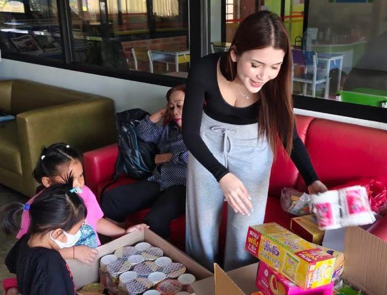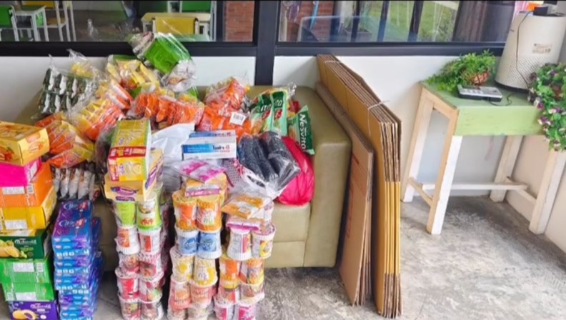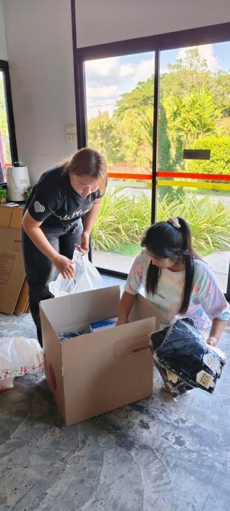 สำหรับสิ่งของที่ทางโรงเรียนนานาชาติฯ ได้ส่งไปบริจาคมีทั้งเวชภัณฑ์ ถุงเท้า เครื่องดื่มสำเร็จรูป อาหารแห้ง และขนม ดังมีรายการดังต่อไปนี้ได้แก่ ยาครีมฆ่าเชื้อรา คาเนสเทน ครีม 70 กล่อง , หมูหยอง หมูดี 60 ถุง , แคบหมู ส ขอนแก่น 120 ถุง ,กาแฟสำเร็จรูป 3 อิน 1 จำนวน 100 ซอง ,โอวัลตินพร้อมชงสำเร็จรูป 100 ซอง,เนสวิต้า เครื่องดื่มธัญพืช 36 ถุง ,ขนมเค้กไส้ครีม ยูโรคัสตาร์ด 120 กล่อง , ยากันยุงทาตัวชนิดพกพา 144 แพ็ค , ยากันยุงแบบขด 100 แพ็ค , บะหมี่สำเร็จรูป มาม่าคัพ 60 กล่อง ,น้ำพริกตาแดง 70 แพ็ค , ถุงเท้าหนา แบบยืดหยุ่น 108 คู่ และทางทางร้านขายยา น่ำเคี้ยว (สาขาสบตุ๋ย) ได้ร่วมบริจาคเป็นครีมฆ่าเชื้อราให้อีก 10 กล่อง และให้ส่วนลดพิเศษสำหรับการซื้อยาครีมฆ่าเชื้อรา ที่ทางโรงเรียนจะนำไปบริจาค
