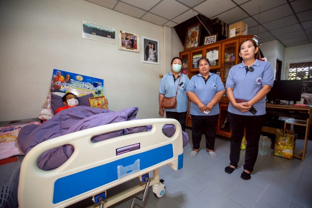 ล่าสุดหลวงพี่น้ำฝน ผู้รักษาการแทนเจ้าอาวาสฯ พร้อมด้วยเจ้าหน้าที่ได้เดินทางลงพื้นที่ไปยังบ้านเลขที่ 28/44 หมู่ที่ 6 ต.บ่อพลับ อ.เมือง จ.นครปฐม เพื่อนำเตียงสำหรับผู้ป่วย ข้าวสารอาหารแห้ง และเครื่องยังชีพที่จำเป็น ไปมอบให้กับครอบครัว ของนายเดช อายุ 58 ปี ซึ่งมีอาการป่วยหนักต้องนอนพักรักษาตัวอยู่บนเตียง โดยมีนางอรอนงค์ อายุ 50 ปี ภรรยาเป็นผู้คอยดูแล และมีคณะ อมส. ประจำตำบลบ่อพลับ คอยให้การช่วยเหลือ นอกจากนี้ยังได้ให้ปัจจัยรวมถึงบรรยายธรรมแบบกระชับเข้าใจง่าย เพื่อเป็นกำลังใจให้กับผู้ป่วย และครอบครัว รวมถึงแสดงความขอบคุณ คณะ อสม. ตำบลบ่อพลับ ที่ร่วมมือร่วมใจกันในการดูแลครอบครัวที่ประสบปัญหาทางด้านสุขภาพ