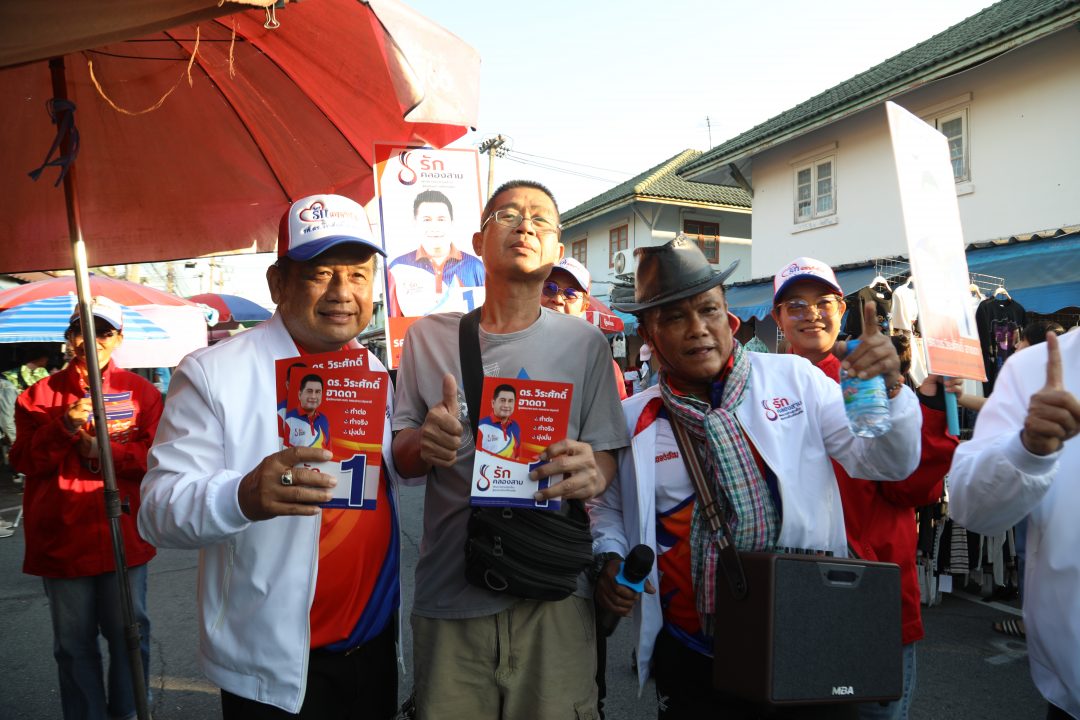 รศ.ดร.วิระศักดิ์ ฮาดดา ผู้สมัคร ชิงตำแหน่ง นายก อบต.คลองสาม หมายเลข 1 ทีมรักคลองสาม พร้อมทีมงานผู้ช่วยหาเสียงออกเดินเท้าพบปะประชาชนภายในหมู่บ้านพฤกษา12 ม.2 ต.คลองสาม อ.คลองหลวง จ.ปทุมธานี โดยแจกใบแนะนำตัวและใบนโยบายในการหาเสียงแจกให้กับประชาชนที่มาเดินจับจ่ายซื้อของในตลาดสดในช่วงเช้า