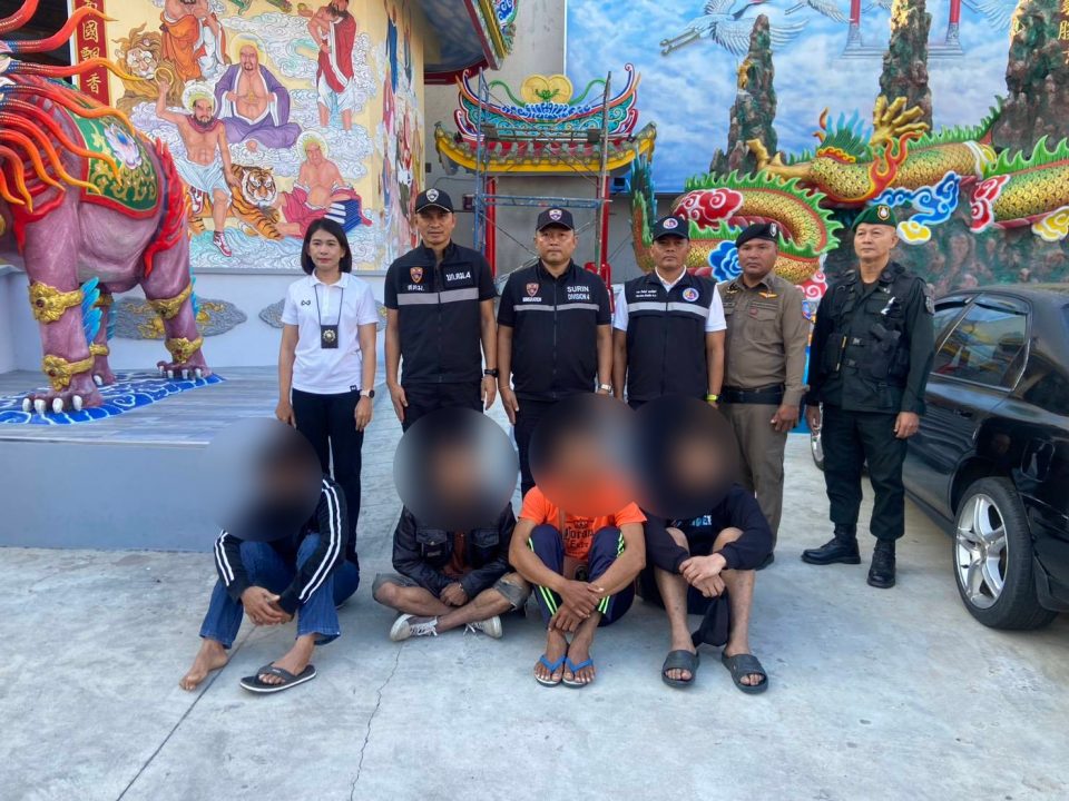 ตรวจคนเข้าเมืองจังหวัดสุรินทร์ กองบังคับการตรวจคนเข้าเมือง 4 ภายใต้การอำนวยการของ พ.ต.อ.เบญจพล รอดสวาสดิ์ ผกก.ตม.จว.สุรินทร์ นำโดย พ.ต.ท.อุดร ชาวแขก รอง ผกก.ตม.จว.สุรินทร์ ,ว่าที่ พ.ต.ท.ณพล พาหอม สว.ตม.จว.สุรินทร์ พร้อมกำลังเจ้าหน้าที่ชุดสืบสวนปราบปราม ตม.จว.สุรินทร์ ร่วมกับ ชุดสืบสวน สภ.เมืองสุรินทร์ , กก.สส.ภ.จว.สุรินทร์ , ตำรวจท่องเที่ยว , กอ.รมน.จ.สุรินทร์ และจัดหางานจังหวัดสุรินทร์ จำนวน 45 นาย
