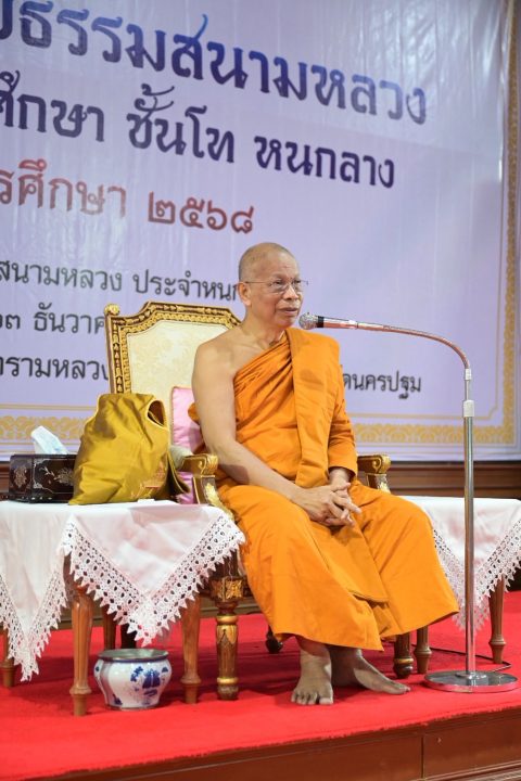 เจ้าประคุณสมเด็จพระมหาวีรวงศ์ กรรมการมหาเถรสมาคม เลขานุการสมเด็จพระสังฆราช แม่กองธรรมสนามหลวง เมตตาเป็นประธานเปิดการตรวจใบตอบธรรมสนามหลวง นักธรรมและธรรมศึกษา ชั้นโท เขตการปกครองคณะสงฆ์หนกลาง 22 จังหวัด ประจำปีการศึกษา 2568 และมอบใบตราตั้งกรรมการตรวจที่ได้รับแต่งตั้งใหม่ ณ วัดไร่ขิง พระอารามหลวง อำเภอสามพราน จังหวัดนครปฐม
