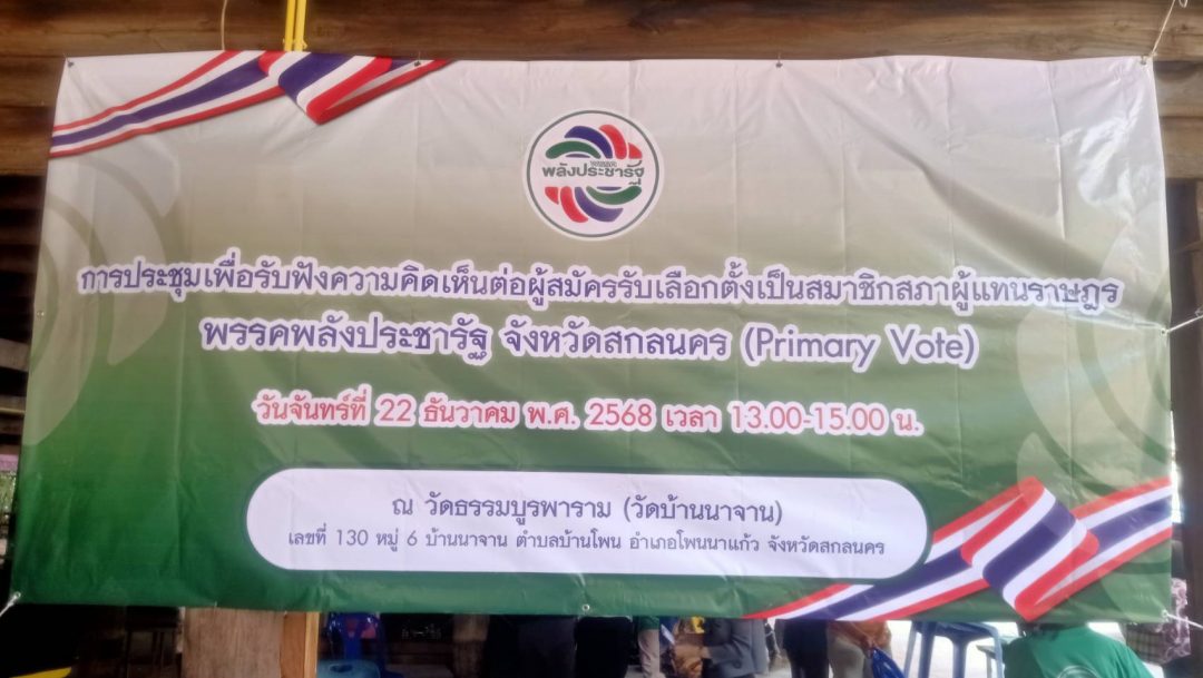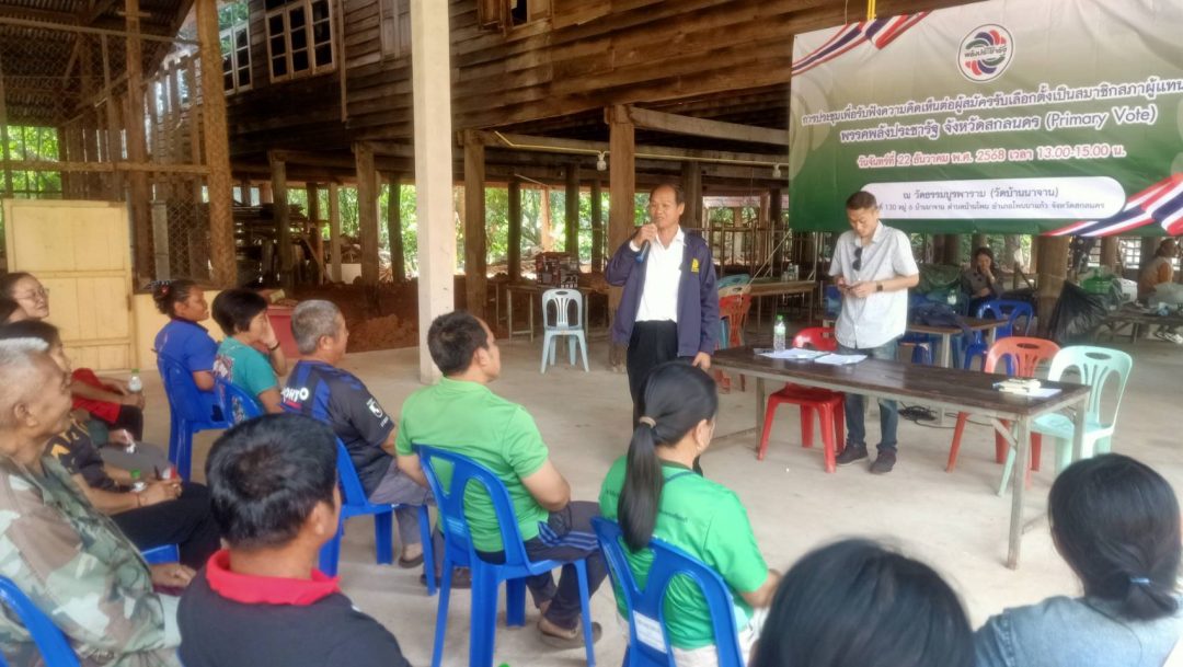 ที่วัดธรรมบูรพาราม บ้านนาจาน บ้านนาจาน หมู่ 6 ต.บ้่นโพน อ.โนนาแก้ว จ.สหลนคร นายชวน พรหมประศรี ประธานสาขาพรรคพลังประชารัฐจังหวัดสกลนคร เปิดการประชุมเพื่อรับฟังความคิดเห็นต่อผู้สมัครเลทอกตั้งเป็นสมาชิกสภาผู้แทนราษฎร พรรคพลังประชารัฐ (Primary Vote) เพื่อคัดเลือกตัวว่าที่ผู้สมัคร ส.ส.สกลนคร จำนวน 7 เขต ปรากฏว่าในเขตเลือกตั้งที่ 2 มีผู้แจ้งความจำนงค์จะลงเพียงคนเดียว คือ ดร.นิยม เวชกามา อดีต ส.ส. ตัวเต็ง ส่วนเขตเลือกตั้งที่ 1 – 3-4-5-6-7 มีจำนวนหลายคนซึ่งจะส่งรายชื่อทั้งหมดให้ทางพรรค พปชร.เป็นคนเคาะว่าจะส่งผู้ใด เป็นที่น่าสังเกตุว่า มีอดีต ส.ส.เช่น นายสาคร พนหมภักดี อดีต ส.ส.หลายสมัย นายวรรศักดิ์ พรหมภักดี อดีต นายก อบจ.สกลนคร นายวัชรินทร์ ศรีถาพร นายสิทธิรัตน์ รัตนวิจารณ์ นอกจากนี้ยังมีนักการเมืองท้องถิ่น ระดับ ส.อบจ.อีกหลายคน ในส่วนของ ส.ส.ระบบบัญชีรายชื่อ มี พล.อ.ประวิตร วงษ์สุวรรณ หัวหน้าพรรค พปชร.นำทีมผู้สมัคร จำนวน 42 คน โดยทางพรรค มีกำหนดเคาะรายว่าที่ผู้สมัครตัวจริงในวันทีา 25 ธันวาคม นี้