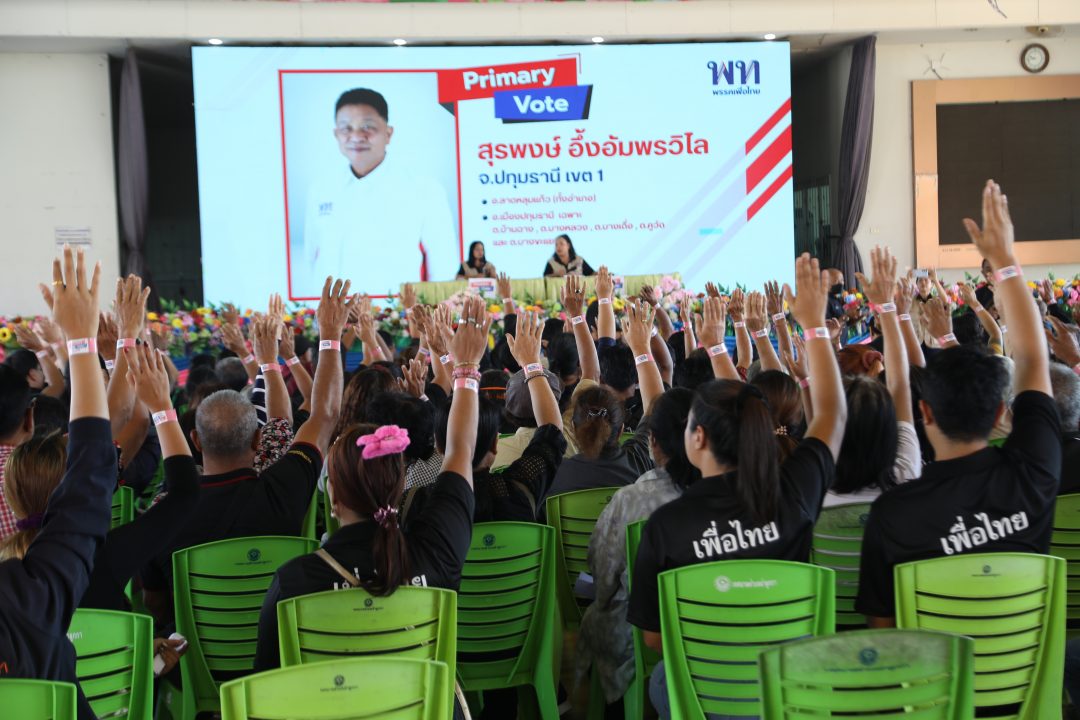 ขอรับฟังความคิดเห็นและการให้ความเห็นชอบหรือไม่ให้ความเห็นชอบรายชื่อผู้สมัครรับเลือกตั้งสมาชิกสภาผู้แทนราษฎรแบบแบ่งเขตเลือกตั้งและแบบบัญชีรายชื่อของพรรคเพื่อไทย โดยมีสมาชิกพรรคเพื่อไทย จำนวน 141 คน เข้าร่วมโหวตคัดเลือก โดยบรรยากาศเป็นไปด้วยความเรียบร้อย ซึ่งพบว่าการ ลงเสียง โหวต ด้วยวิธีการยกมือเห็นชอบหรือเห็นชอบ มีสมาชิกต่างร่วมยกมือเห็นชอบผู้สมัครทั้ง 8 เขต โดยมี เขต 1 นายสุรพงษ์ อึ้งอัมพรวิไล เขต 2 นายศุภชัย นพขำ เขต 3 นายภัทรพล ฐิติภวัตสกุล เขต 4 นายสุทิน นพขำ เขต 5 นายภานุวัฒน์ ณ ระนอง เขต 6 นายอธิวัฒน์ สอนเนย เขต 7 นายบุญเริ่ม อรชุน เขต 8 นายยงยุทธ มั่นบุปผชาติ ซึ่งเหล่าบรรดาผู้สมัคร สส.พรรค เพื่อไทย ทั้ง 8 เขต มี 3 เขตที่เคยเป็นที่นั่งเดิมของ สส.พรรคเพื่อไทยในพื้นที่เก่า และพบว่า เขตตำบลและอำเภอในบางส่วนมีการเปลี่ยนแปลงจากเขตการเลือกตั้งครั้งก่อน