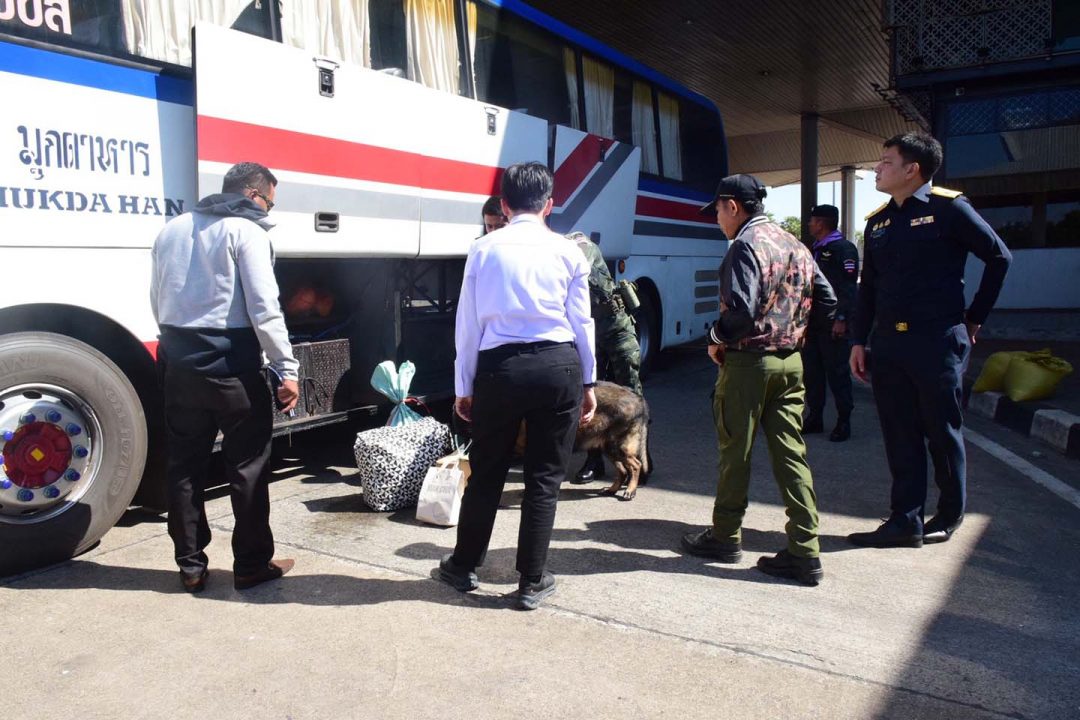 ที่ด่านพรมแดนสะพานมิตรภาพไทย-ลาว แห่งที่ 2 (มุกดาหาร-สะหวันนะเขต) พ.ต.อ.ธนิศร แสงท่านั่ง ผกก.ตรวจคนเข้าเมืองจังหวัดมุกดาหาร พร้อมด้วย นางกนกวรรณ สุขศิริ นายด่านศุลกากรมุกดาหาร, นายสถิตย์ พิสัยสวัสดิ์ หัวหน้าด่านตรวจสัตว์ป่ามุกดาหาร (CITES), นายณรงค์ รัตนตรัยวงศ์ หัวหน้าด่านกักกันสัตว์มุกดาหาร,ร้อยทหารพรานที่ 2105 ,หน่วยทหารสุนัข และเจ้าหน้าที่ที่เกี่ยวข้อง