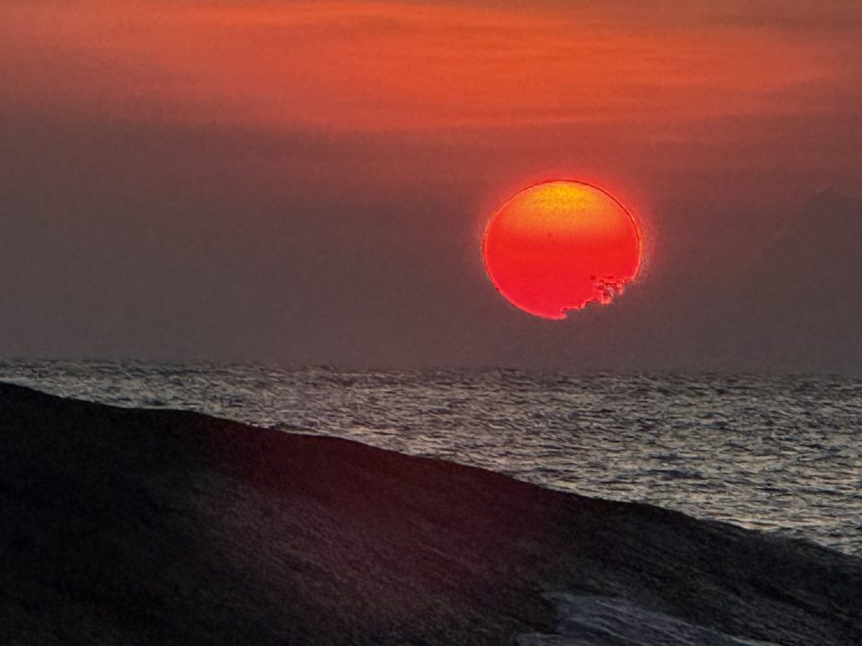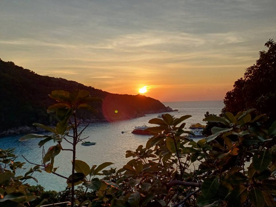 ที่หมู่เกาะสิมิลัน ต.เกาะพระทอง อ.คุระบุรี จ.พังงา เป็นหมู่เกาะที่อยู่สุดไปทางทิศตะวันตกมากที่สุดในทะเลอันดามันติดกับมหาสมุทรอินเดีย จึงเป็นพื้นที่ ที่สามารถมองเห็นพระอาทิตย์ค่อยๆ จมหายไปในเส้นขอบทะเลอย่างชัดเจนยาวนานที่สุดในประเทศไทย ซึ่งจะเป็นแสงสุดท้ายของปี 2568 โดยวันนี้พระอาทิตย์ได้ตกในเวลา 18.21 น. ภาพแสงสุดท้ายวันนี้บันทึกที่เกาะ8 หรือเกาะสิมิลัน ที่มีหินเรือใบ สัญลักษณ์ของเกาะสิมิลัน ภาพดวงอาทิตย์ดวงโตค่อยลับขอบฟ้าลงในทะเลอย่างสวยงาม