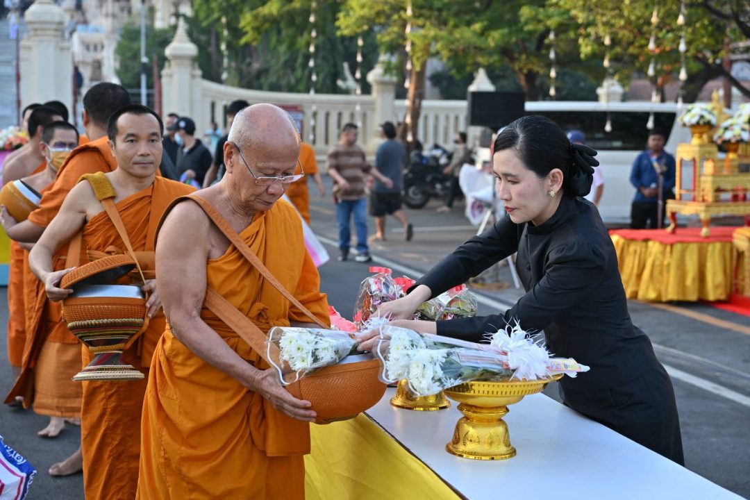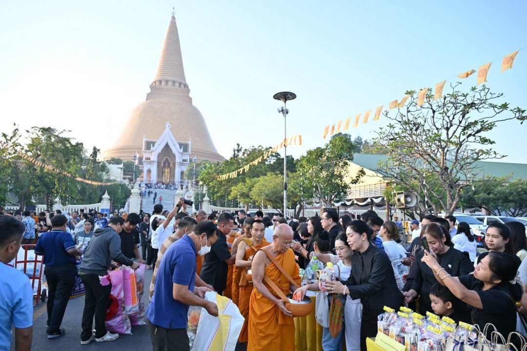 บรรยากาศของการทำบุญของประชาชนในพื้นที่อำเภอเมืองนครปฐม เนื่องในโอกาสวันขึ้นปีใหม่ โดยตั้งแต่เช้าตรู่ ที่บริเวณลานหน้าพระร่วงโรจนฤทธิ์ องค์พระปฐมเจดีย์ อำเภอเมือง จังหวัดนครปฐม นางสาวอโรชา นันทมนตรี ผู้ว่าราชการจังหวัดนครปฐม พร้อมด้วย รองผู้ว่าราชการจังหวัด รองนายกเหล่ากาชาดจังหวัด หัวหน้าส่วนราชการ ข้าราชการ เจ้าหน้าที่จากหน่วยงานต่างๆ และประชาชนชาวจังหวัดนครปฐมเป็นจำนวนมาก ร่วมทำบุญตักบาตรข้าวสาร อาหารแห้ง ถวายแด่พระสงฆ์ เนื่องในโอกาสต้อนรับวันขึ้นปีใหม่ 2569 เพื่อถวายพระราชกุศลแด่ พระบาทสมเด็จพระบรมชนกาธิเบศร มหาภูมิพลอดุลยเดชมหาราช บรมนาถบพิตร สมเด็จพระนางเจ้าสิริกิติ์ พระบรมราชินีนาถ พระบรมราชชนนีพันปีหลวง และถวายเป็นพระราชกุศลแด่ พระบาทสมเด็จพระเจ้าอยู่หัว สมเด็จพระนางเจ้าฯ พระบรมราชินี และพระบรมวงศานุวงศ์ทุกพระองค์ อีกทั้งเพื่อความเป็นสิริมงคล ความสงบสุขแก่ชีวิตและครอบครัว ตลอดปี 2569