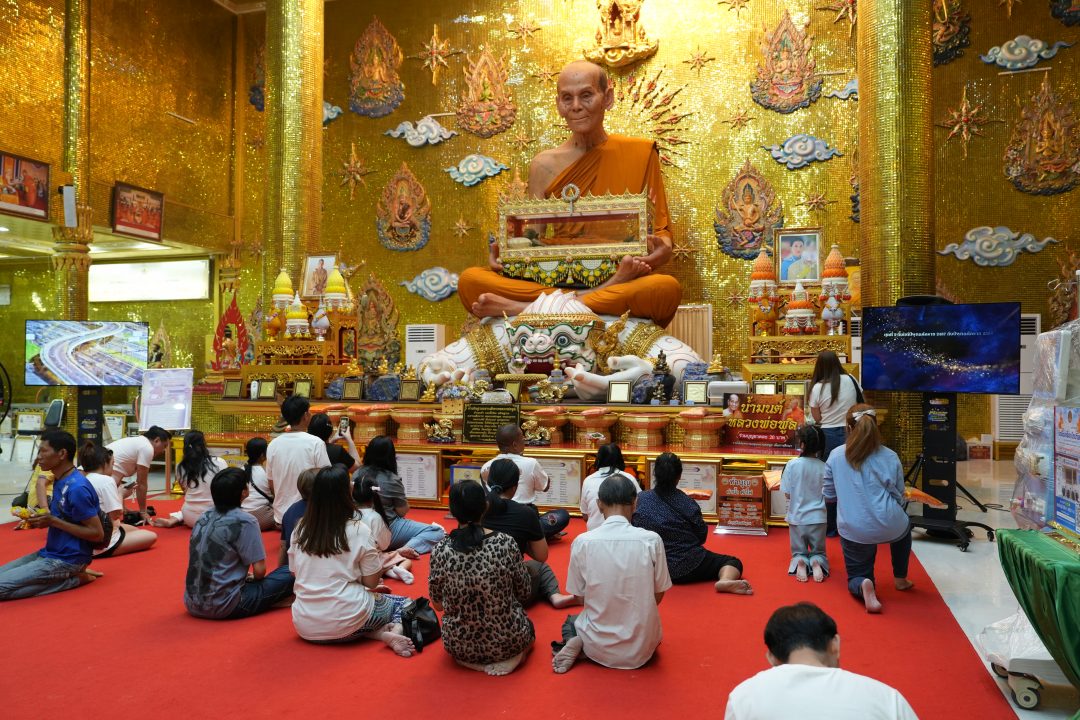 ขณะที่วัดไผ่ล้อมพระอารามหลวง จังหวัดนครปฐม ประชาชนได้เดินทางเข้ามาทำบุญ และกราบไหว้ขอพร จากสิ่งศักดิ์สิทธิภายในวัดอย่างต่อเนื่องตั้งแต่ช่วงเช้าจนถึงบ่าย โดยจุดหลักคือการได้เข้ามากราบสรีระสังขารของพระเดชพระคุณหลวงพ่อพูล อัตตรักโข อดีตเจ้าอาวาสวัดไผ่ล้อม ที่ภายในศาลาหลวงพ่อพูล และปิดทองที่รูปหล่อหลวงพ่อพูล โดยมีความเชื่อกันว่า ชีวิตจะเพิ่มพูล เพิ่มสุข เพิ่มมงคล เพื่อบารมี ด้วยความพูลสุข ตามชื่อมงคลของหลวงพ่อพูล นอกจากนี้ยังขอให้ พระครูปลัดสิทธิวัฒน์ ทำการเจิมแป้ง ตำรับหลวงพ่อพูล เพื่อเป็นการสร้างขวัญกำลังใจให้กับการดำเนินชีวิตในปี 2569 ซึ่งเป็นปีม้า ที่ถือว่าเป็นม้ากระโดดเพื่อเข้าไปสู่ความสำเร็จ