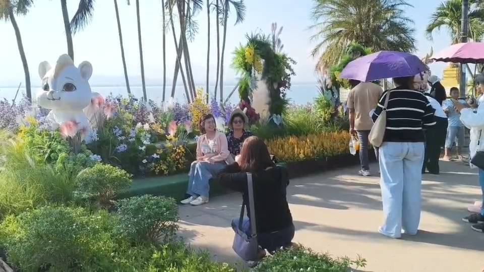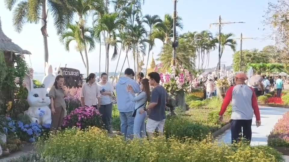 บริเวณงานดอกไม้งามริมกว๊านพะเยา พบว่ามีนักท่องเที่ยวนับหมื่นคนเดินทางเข้าชมความสวยงามของดอกไม้นานาพันธุ์ พร้อมถ่ายภาพและพักผ่อนท่ามกลางบรรยากาศธรรมชาติ ขณะที่วัดพระเจ้าตนหลวงยังคงมีพุทธศาสนิกชนเดินทางเข้ากราบไหว้ ขอพร เสริมสิริมงคลรับปีใหม่อย่างไม่ขาดสาย