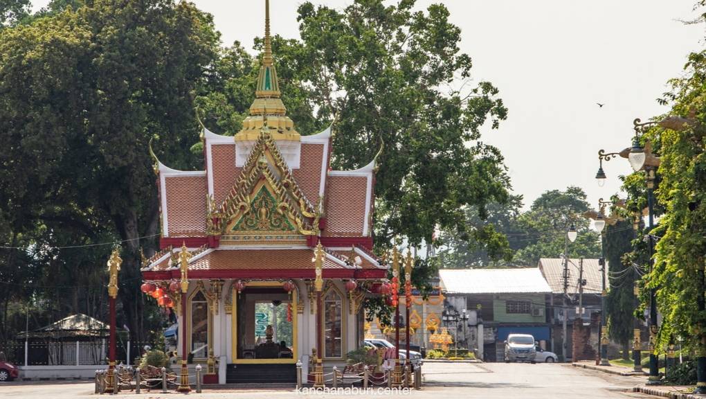 ศาลหลักเมืองกาญจนบุรี สร้างขึ้นใหม่แทนศาลเดิมซึ่งชำรุดในสมัยพระยาประสิทธิสงคราม (รามภักดี ศรีวิเศษ)เจ้าเมืองกาญจนบุรี คนที่ 2 เมื่อปี พ.ศ.2503 เป็นอาคารจัตุรมุขหลังคาทรงไทย ตัวอาคารหันหน้าไปยังบริเวณที่แม่น้ำแควน้อยและแม่น้ำแควใหญ่ไหลมาบรรจบกัน ภายในประดิษฐานหลักเมืองซึ่งเป็นเสาหัวเม็ดทรงมัน ด้านหน้ามีศิลาจารึกและจารึกไม้สักระบุวัน เดือน ปีที่สร้างเมืองศาลหลักเมืองเป็นที่เคารพสักการะของชาวกาญจนบุรี เวลามีงานประเพณีสำคัญ เช่น งานบวช แต่งงาน โกนผมไฟเด็ก ก็จะมากราบไหว้เพื่อบอกกล่าวเจ้าพ่อศาลหลักเมืองเสมอ รถทุกคันที่วิ่งผ่านบริเวณนี้ก็แสดงความเคารพด้วยการบีบแตรโดยเทศบาลเมืองกาญจนบุรี ได้จัดงานไหว้ศาลหลักเมืองประจำทุกปี ในวันขึ้น 6 ค่ำ เดือน 6 (เดือนพฤษภาคม) นับว่าศาลหลักเมืองกาญจนบุรี ในปัจจุบันทางเทศบาลเมืองกาญจนบุรี ได้มีการปรับปรุงใหม่อย่างสง่าและงดงามยิ่งหน้าประตูเมือง