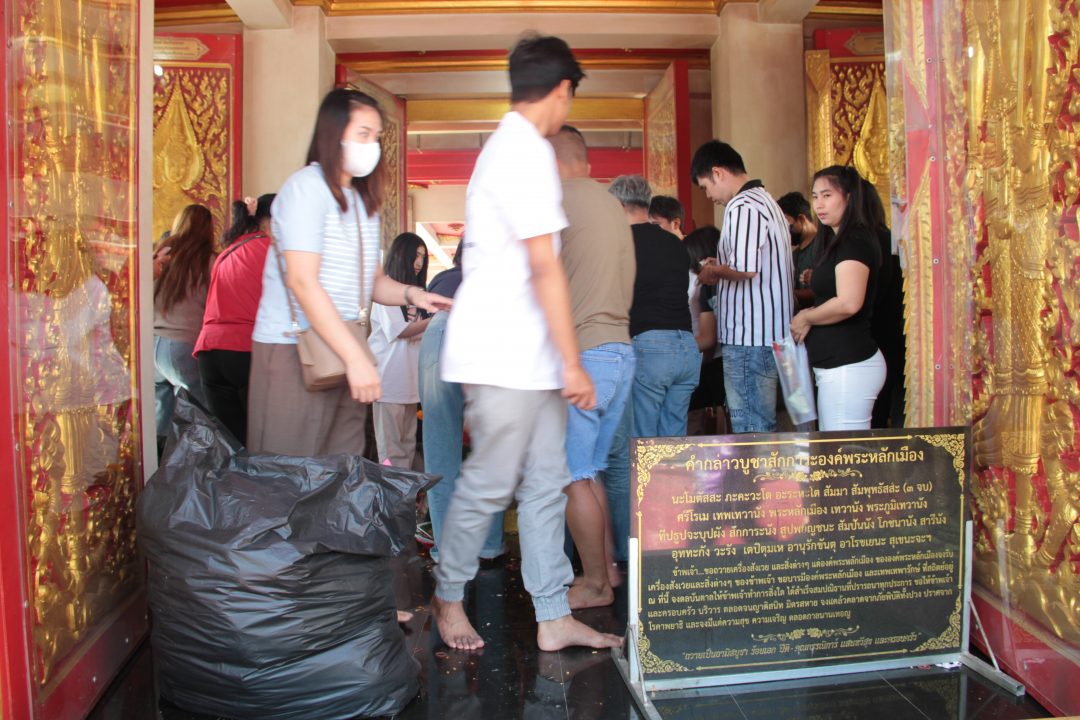 บรรยากาศค่อนข้างแน่น ทำให้การสัญจรไปยังจุดต่างๆ ภายในศาล และริมถนนมียานพาหนะจอดเป็นจำนวนมาก มีความติดขัดบ้างเป็นบางช่วงผู้ใช้รถผ่านไปอย่างช้าๆ โดยมีเจ้าหน้าที่ตำรวจจารจรและเทศกิจ คอยดูแลรวมถึงแจ้งเตือนให้ประชาชนระมัดระวังทรัพย์สินมีค่า เนื่องจากมีประชาชนเดินทางมาจำนวนมาก และสามารถกราบไหว้สักการะศาลหลักเมืองได้อย่างเรียบร้อยและปลอดภัย ส่วนบรรยากาศตามวัดต่างๆ ก็มีประชาชน เนื่องจากวันนี้ตรงกับวันพระ จึงมีประชาชนไปร่วมทำบุญ เพื่อขอพรเสริมสิริมงคลต้อนรับศักราชใหม่ 2569