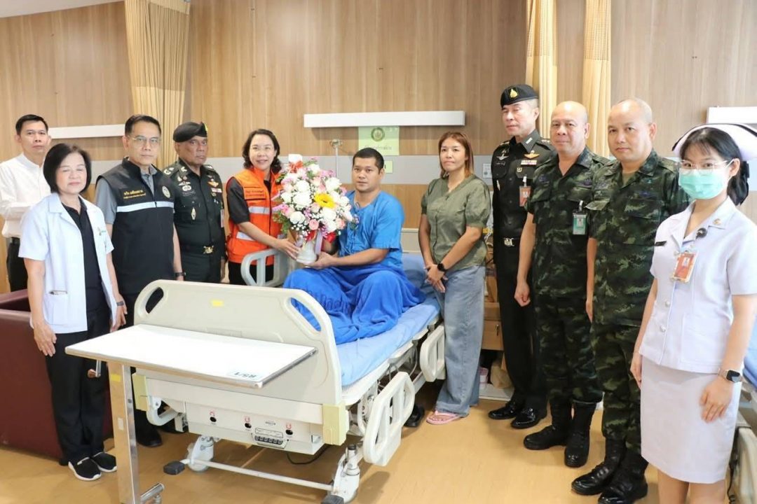 เยี่ยมและให้กำลังใจ จ.ส.อ.ธีระ หมวกเพ็ชร นายทหารที่ได้รับบาดเจ็บสาหัสจากการปฏิบัติหน้าที่ โดยถูกยิงที่ศีรษะห่างจากสมองเพียง 2 มิลลิเมตร กระสุนฝังขณะปฏิบัติภารกิจที่ชายแดนจังหวัดสุรินทร์ซึ่งในขณะนี้อาการของ จ.ส.อ.ธีระ หมวกเพ็ชร แผลที่ผิวปิดแล้ว รู้ตัวรู้เรื่องดีแต่ยังต้องพักรักษาตัวที่โรงพยาบาลก่อนเพื่อสังเกตอาการเพราะยังมีอาการชาที่บริเวณแผล