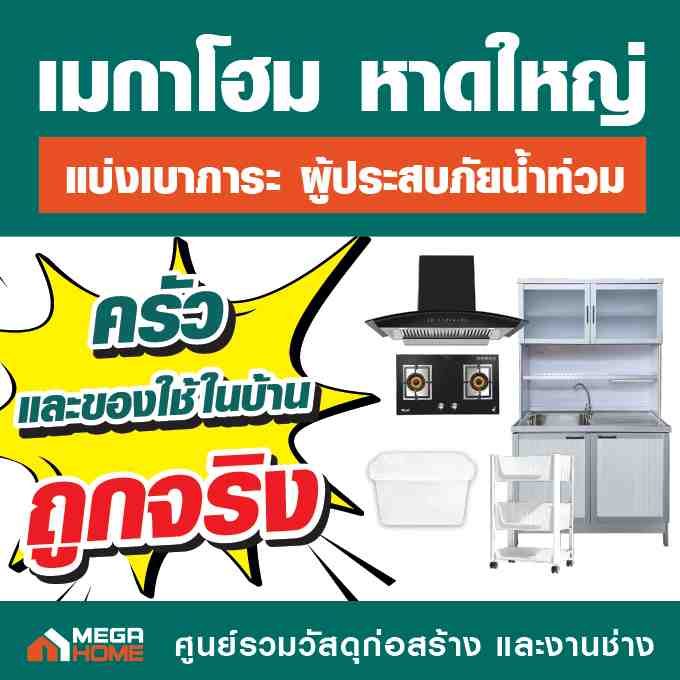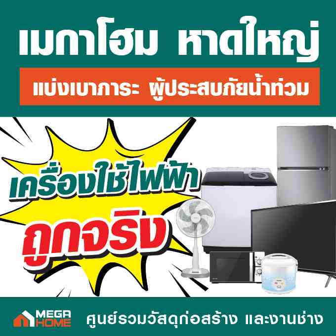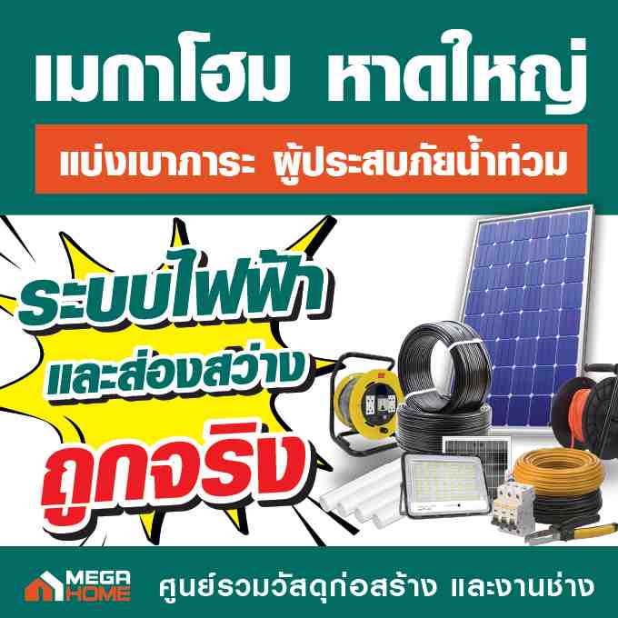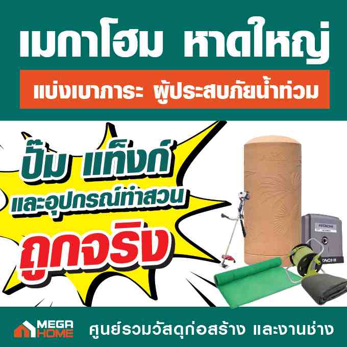ในช่วงสถานการณ์น้ำท่วมที่ผ่านมา “เมกาโฮม หาดใหญ่” ได้ร่วมแบ่งเบาภาระของผู้ประสบภัย ผ่านมาตรการสินค้าราคาพิเศษ เพื่อสนับสนุนการซ่อมแซมและฟื้นฟูบ้านเรือน ครอบคลุมตั้งแต่เครื่องใช้ไฟฟ้า เครื่องมือช่าง ระบบไฟฟ้าและแสงสว่าง สีและฮาร์ดแวร์ ไปจนถึงกลุ่มสินค้าจัดการน้ำและซ่อมแซมโครงสร้างบ้าน เช่น ปั๊มน้ำ แท็งก์น้ำ อุปกรณ์ทำสวน ครัว และของใช้ในบ้าน ประตู หน้าต่าง สุขภัณฑ์ รวมถึงกระเบื้องและวัสดุก่อสร้างที่จำเป็น เพื่อให้ประชาชนสามารถเริ่มต้นฟื้นฟูบ้านได้ทันทีเมื่อสถานการณ์คลี่คลาย และกลับมาใช้ชีวิตตามปกติโดยเร็ว