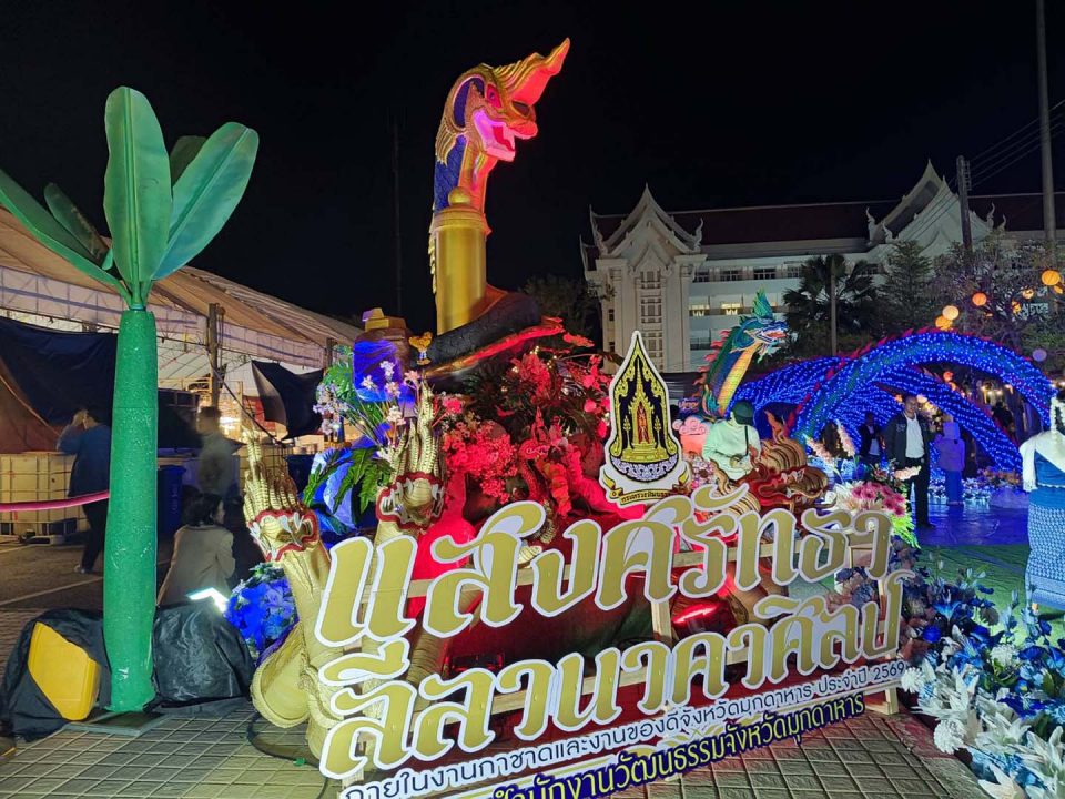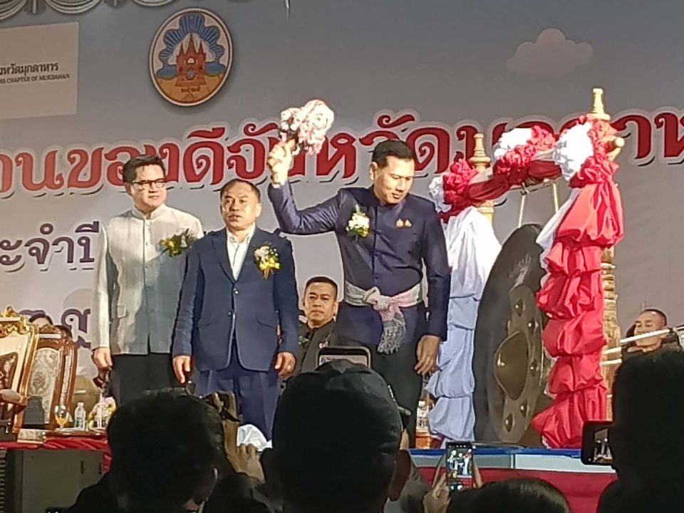 นายวรญาณ บุญณราช ผู้ว่าราชการจังหวัดมุกดาหาร พร้อมด้วยนายอนุชา ไกสอน รองประธานคณะกรรมการปกครองนครไกสอนพมวิหาน นายปัฐม์ ปัทมจิตร กงสุลใหญ่ ณ แขวงสะหวันนะเขต รองผู้ว่าราชการจังหวัดมุกดาหาร นางอัญชลี กัลมาพิจิตร นายกเหล่ากาชาดจังหวัดมุกดาหาร หัวหน้าส่วนราชการ หัวหน้าหน่วยงานรัฐวิสาหกิจ นายอำเภอ ผู้บริหารองค์กรปกครองส่วนท้องถิ่น ผู้บริหารองค์กรภาคเอกชน และประชาชนชาวจังหวัดมุกดาหาร ร่วมในพิธีเปิดงานกาชาดและงานของดีจังหวัดมุกดาหาร ประจำปี 2569 ณ เวทีกลาง สนามหน้าศาลากลางจังหวัด