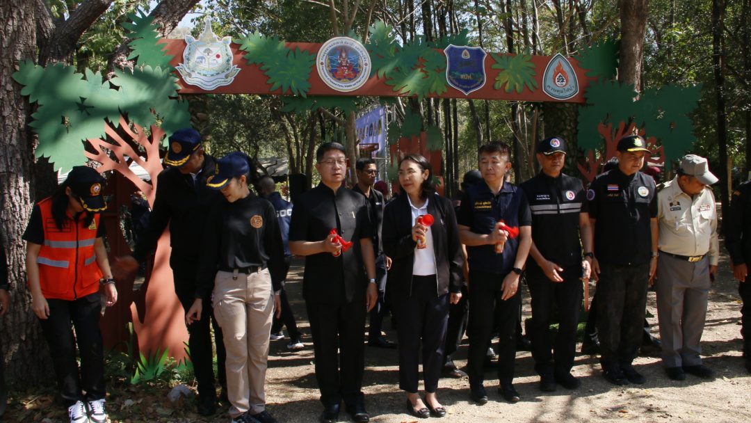 มีนายวุฒิพงษ์ สุภัควนิช นายสิทธิวีร์ วรรณพฤกษ์ รอง ผวจ.กาญจนบุรี รอง ผวจ.กาญจนบุรี นางสาวกมลชญา ประเสริฐสิน ปลัดจังหวัดกาญจนบุรี นายอากรชัย อวยพรชัยรัตน์ ผู้อำนวยการส่วนควบคุมและปฏิบัติการไฟป่า นายไพฑูรย์ อินทรบุตร หน.สปป.1 ภาคกลาง นายสุทธิชัย โผภูเขียว หัวหน้าเขตรักษาพันธุ์สัตว์ป่าสลักพระ นายสมคิด สิริรัตน์ หัวหน้าศูนย์ฝึกอบรมและพัฒนาการควบคุมไฟป่าภาคกลางกาญจนบุรี และนายวรุณ จันทร์สว่าง หัวหน้าสถานีควบคุมไฟป่าสลักพระ-เอราวัณ นายวสันต์ สุนจิรัตน์ ประธานสภาลมหายใจ จังหวัดกาญจนบุรี รวมถึงเจ้าหน้าที่อุทยานฯในสังกัด สบอ.3 (บ้านโป่ง)เจ้าหน้าที่ทหารกองพลทหารราบที่ 9 ค่ายสุรสีห์ เจ้าหน้าที่ มทบ.17 เจ้าหน้าที่ กอ.รมน.กาญจนบุรี เจ้าหน้าที่สำนักงานป้องกันและบรรเทาสาธารณภัยจังหวัดกาญจนบุรี หัวหน้าส่วนราชการ เจ้าหน้าที่สำนักจัดการทรัพยากรป่าไม้ที่ 10 (ราชบุรี) เจ้าหน้าที่สำนักงานทรัพยากรธรรมชาติและสิ่งแวดล้อมจังหวัด เจ้าหน้าที่เกษตรจังหวัดกาญจนบุรี และหน่วยงานที่เกี่ยวข้องทั้งหมดเข้าร่วม