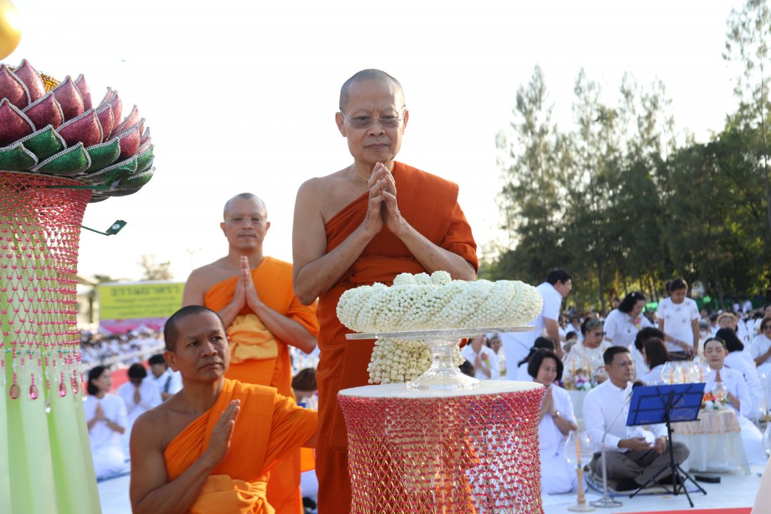 จากนั้น พระเทพวัชรธรรมภาณี รองเจ้าคณะภาค 8 ผู้ช่วยเจ้าอาวาสวัดไตรมิตรวิทยารามวรวิหาร ประธานสงฆ์ น้อมนำพวงมาลัยถวายบูชาพระบรมสารีริกธาตุ และรูปหล่อพระมงคลเทพมุนี (สด จนฺทสโร) พร้อมนำคณะสงฆ์ธรรมยาตรา 1,142 รูป และพุทธศาสนิกชนจุดประทีปถวายเป็นพุทธบูชา และบูชาธรรมพระมงคลเทพมุนี (สด จนฺทสโร) ต่อมาพระครูธรรมธรอารักษ์ ญาณารักโข แสดงพระธรรมเทศนา เรื่อง ความสำคัญของสถานที่ตั้งมโนปณิธานว่า “จะบวชตลอดชีวิต” ความตอนหนึ่งว่า “อนุสรณ์สถานคลองบางนางแท่นเป็นหนึ่งในสถานที่สำคัญของเส้นทางพระผู้ปราบมาร ตั้งอยู่ริมคลองลัดบางนางแท่น ตำบลทรงคนอง อำเภอสามพราน จังหวัดนครปฐม ณ บริเวณสถานที่แห่งนี้ คือ สถานที่ซึ่งพระมงคลเทพมุนี (สด จนฺทสโร) หลวงปู่วัดปากน้ำ ภาษีเจริญ พระผู้ปราบมาร ตั้งมโนปณิธานว่า “จะบวชตลอดชีวิต” โดยในขณะนั้น ท่านมีอาชีพเป็นพ่อค้าข้าว อายุ 19 ปี”