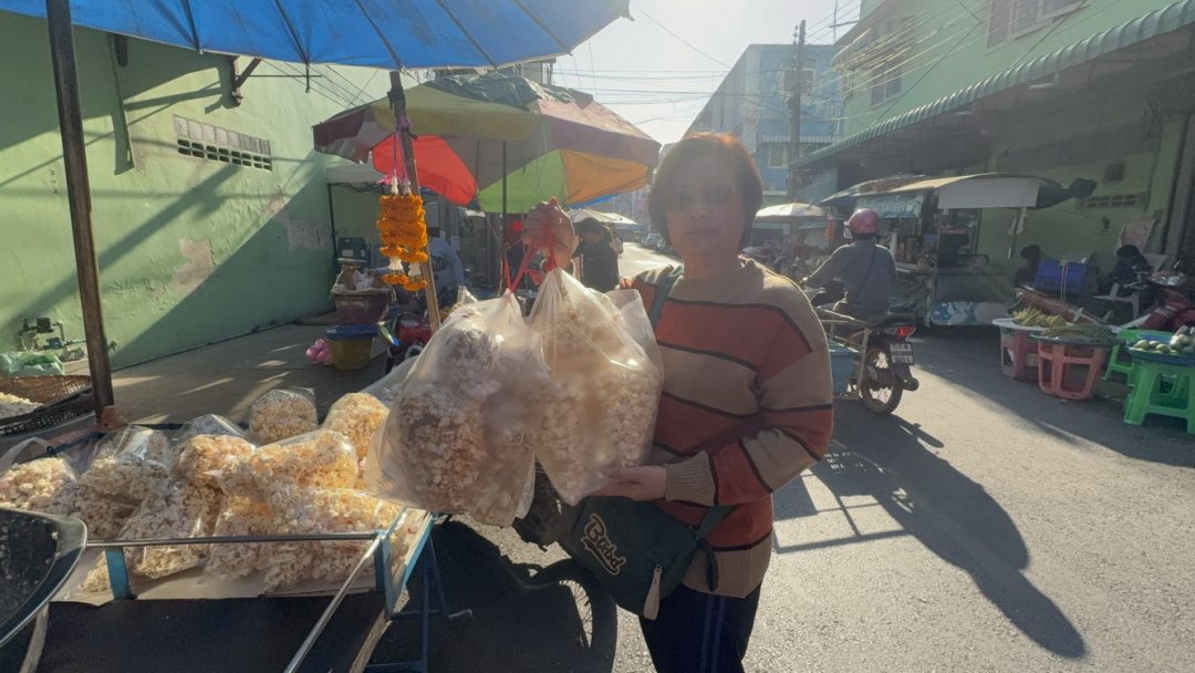 สูตรเด็ดเคล็ดลับความอร่อยลงตัว อยู่ที่น้ำลาดข้าวโพคั่ว มีตาลมะพร้าวที่มีความหอมหวาน เคี่ยวกับหัวกะทิ เกลือ และนมข้นหวานมัน ทำให้กลมกล่อมลง เปิดขายเสริฟ์ความอร่อยแบบไทย ๆ ทำให้ย้อนอดีตนึกถึง ข้าวโพดคั่วเตาถ่าน ในงานวัด ป๊อบคอร์น ข้าวโพดคั่วโบราณ ป้าต้อย หากได้ลองลิ้มชิมรสชาติ คำเดียวคงไม่พอ ต้องหยิบใส่ปากไปเรื่อย ๆ จนหมดถุงอย่างแน่นอน ที่ร้านเปิดขายทุกวัน ตั้งแต่ 04.00 – 11.00 ราคาถุงละ10 บาท 11 ถุง 100 บาท โทร 084-2520872 ป้ารี ลูกสาวป้าต้อย