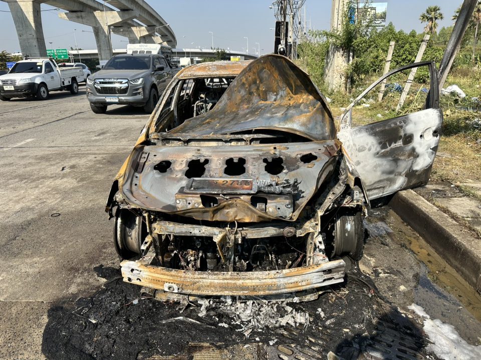 นายภพภณ พรหมภักดี อายุ 62 ปี เจ้าของรถ กล่าวว่าเหตุเกิดประมาณ 09.30 น.ตนกำลังจะขับรถมุ่งหน้าแยกแครายขับรถมาจากบางใหญ่ตนมีอาชีพขับ รถ Bolt ขับผ่านตรงนี้ทุกวันพอมาถึงที่เกิดเหตุได้กลิ่นเหม็นจากด้านหน้าห้องเครื่อง พยายามขับรถเข้าข้างทางไฟด้านหน้ารถพุ่งขึ้นมาทำให้ขับรถต่อไปไม่ได้ไม่รู้จะทำยังไงรีบวิ่งหนีลงจากรถโชคดีไม่ได้รับบาดเจ็บ
