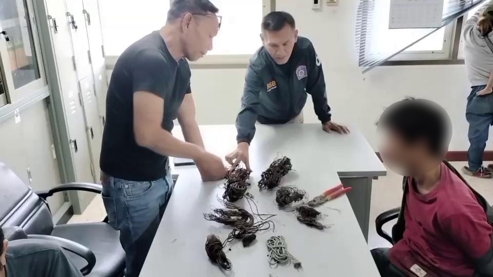ทราบชื่อผู้ก่อเหตุคือ นายดำ อายุ 33 ปี พร้อมของกลาง รถจยย. ไม่ติดแผ่นป้ายทะเบียน สายไฟ ทองแดง อุปกรณ์คีมตัดสายไฟ สีสเปรย์ สารภาพทำมาหลายครั้ง หากได้เงินมา นำไปซื้อยาบ้ามาเสพ วันละ 3-4 เม็ด อาศัยกินนอน หลบซ่อนตัวอยู่ในป่า