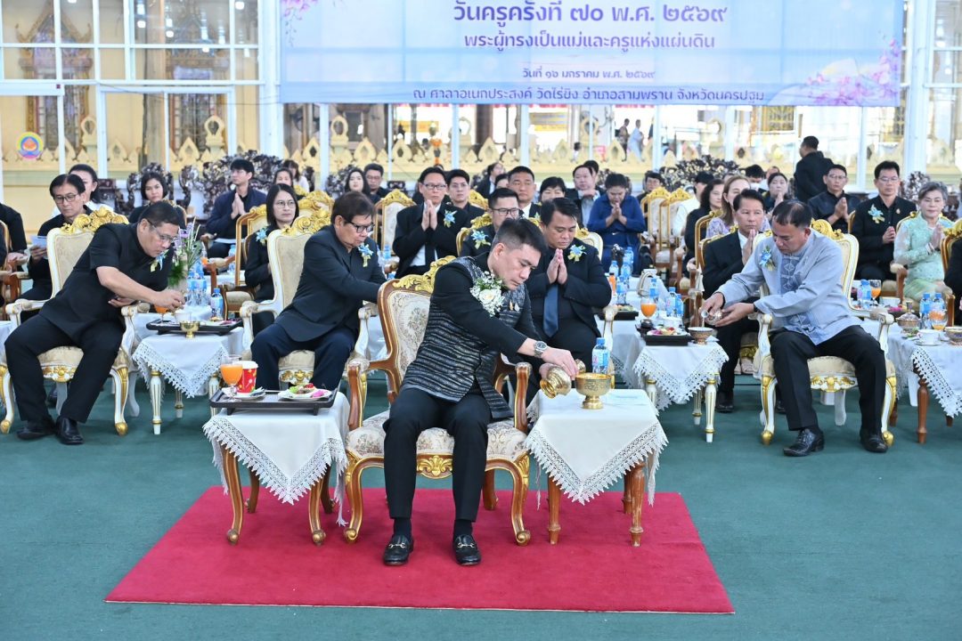 ที่ศาลาอเนกประสงค์ วัดไร่ขิง พระอารามหลวง อำเภอสามพราน จังหวัดนครปฐม นายยงยุทธ สวนทอง รองผู้ว่าราชการจังหวัดนครปฐม เป็นประธานพิธีเนื่องในวันครู ครั้งที่ 70 ปี 2569 ซึ่งสำนักงานศึกษาธิการจังหวัดนครปฐม ร่วมกับหน่วยงานทางการศึกษาในจังหวัดนครปฐม จัดขึ้นเพื่อประกอบพิธีระลึกถึงพระคุณบูรพาจารย์ ส่งเสริมสามัคคีธรรมระหว่างครู และความเข้าใจอันดีระหว่างครูกับประชาชน รวมถึงส่งเสริมยกย่องเชิดชูเกียรติผู้ประกอบวิชาชีพทางการศึกษาที่ประกอบคุณงามความดี หรือทำคุณประโยชน์ต่อวงการศึกษา ให้เป็นที่ประจักษ์แก่สาธารณชน โดยมี พระรัตนสุธี สุเมธี ผู้ช่วยเจ้าอาวาสวัดไร่ขิง พระอารามหลวง ประธานฝ่ายสงฆ์ พร้อมด้วย ผู้บริหารทางการศึกษา ครู อาจารย์ และคุณประโยชน์ต่อวงการศึกษาเข้าร่วมพิธี จำนวน 1,000 คน