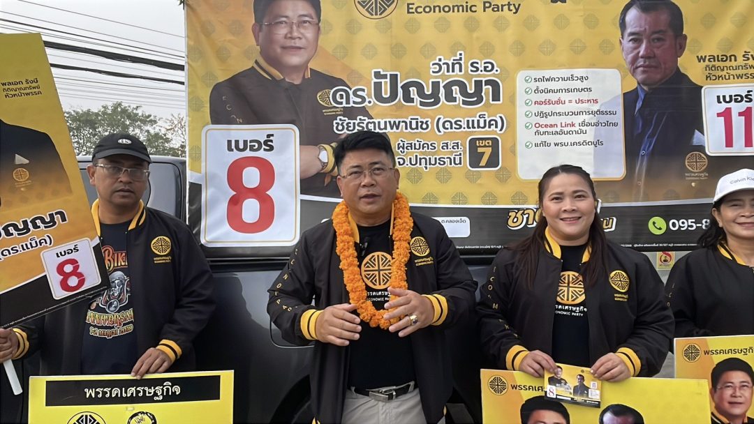ทางด้าน ว่าที่ ร.อ.ดร.ปัญญา ชัยรัตนพานิช (ดร.แม็ค) ผู้สมัครสมาชิกสภาผู้แทนราษฎร (ส.ส.) จว.ปทุมธานี เขต 7 หมายเลข 8 พรรคเศรษฐกิจ มีพลเอกรังสี กิติญาทรัพย์ แคนดิเดตนายกรัฐมนตรีและหัวหน้าพรรคเศรษฐกิจ เป็นอีกผู้สมัคร ส.ส.อีกคนที่ประชาชนให้ความสนใจ ที่พรรคชูนโยบายในการหาเสียง การสร้างรถไฟความเร็วสูง ตั้งนิคมการเกษตร การปฏิรูปกฎหมายเพื่อปราบปรามการทุจริตคอร์รัปชันและการฉ้อราษฎร์บังหลวงความผิด 157 โทษประหาร การปฏิรูปกระบวนการยุติธรรม โครงการโอเชี่ยนลิงก์ Ocean Link หรือการเชื่อมอ่าวไทยกับทะเลอันดามัน การแก้ไข พรบ.เครดิตบูโร และเรื่องเร่งด่วนเพื่อแบ่งเบาภาระการลดค่าไฟฟ้าทันที หากได้เป็นผู้นำในการจัดตั้งรัฐบาล