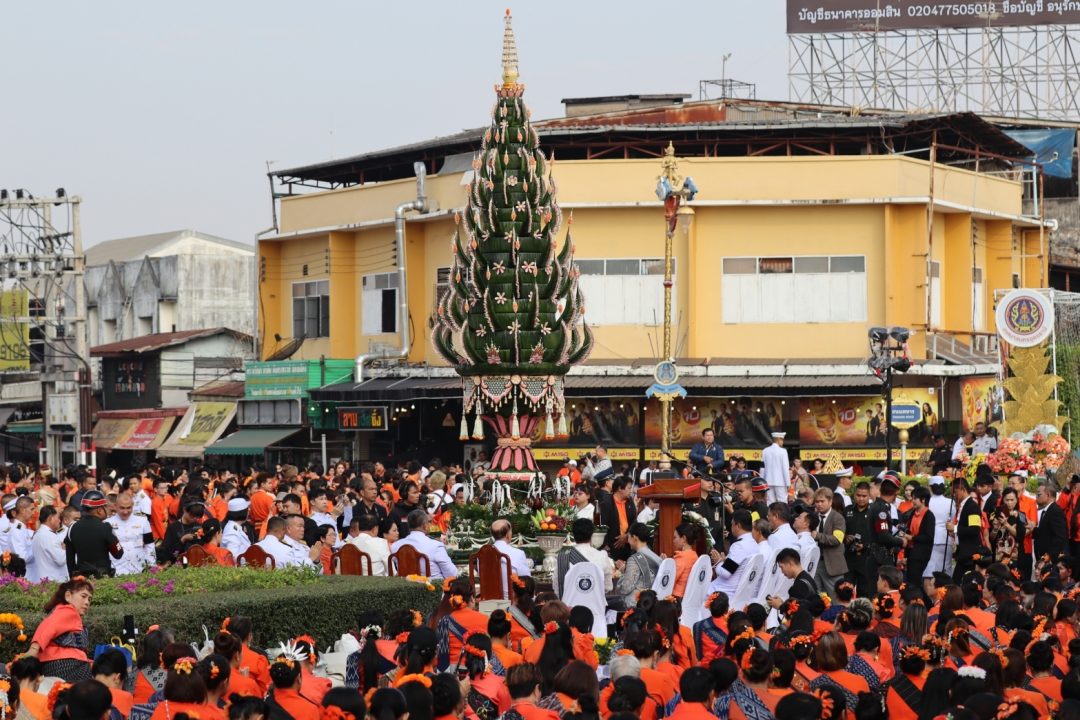 พิธีเริ่มขึ้นตั้งแต่เวลา 06.00 น. องคมนตรีเป็นประธานในพิธีทางพระพุทธศาสนา ทำบุญตักบาตรพระสงฆ์ 133 รูป จากนั้นประกอบพิธีถวายพานพุ่มดอกไม้สด พิธีบายศรีสู่ขวัญบ้านสู่ขวัญเมือง ถวายเครื่องสังเวยบูชา และอ่านประกาศสดุดีเฉลิมพระเกียรติกรมหลวงประจักษ์ศิลปาคม ผู้ทรงเลือก “บ้านหมากแข้ง” เป็นชัยภูมิในการก่อตั้งเมือง จนพัฒนาเจริญรุ่งเรืองเป็นจังหวัดอุดรธานีในปัจจุบัน