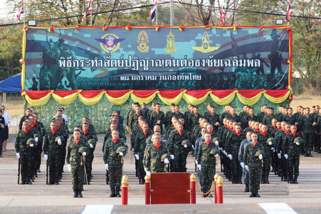 พลตรีประเสริฐ ข่าทิพย์พาที ผู้บัญชาการมณฑลทหารบกที่ 24 เป็นประธานในพิธีกระทำสัตย์ปฏิญาณตนต่อธงชัยเฉลิมพล เนื่องในวันกองทัพไทย ประจำปี 2569 ณ ลานหน้าพระอนุสาวรีย์พลตรีพระเจ้าบรมวงศ์เธอ กรมหลวงประจักษ์ศิลปาคม ค่ายประจักษ์ศิลปาคม อำเภอเมือง จังหวัดอุดรธานี