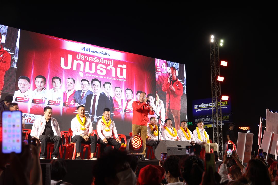เมื่อเวลา 19.00 น. วันที่ 19 มกราคม 2569 บรรยากาศทางการเมืองในจังหวัดปทุมธานีถึงจุดเดือด เมื่อพรรคเพื่อไทยยกทัพขุนพลระดับพรีเมียม นำโดย ศ.ดร.ยศชนันท์ วงศ์สวัสดิ์ (ดร.เชน) แคนดิเดตนายกรัฐมนตรี พร้อมด้วย นายสุริยะ จึงรุ่งเรืองกิจ, นายณัฐวุฒิ ใสยเกื้อ และ นายศึกษิษฏ์ ศรีจอมขวัญ เปิดเวทีปราศรัยท่ามกลางทะเลสีแดงของพี่น้องประชาชนที่มาให้กำลังใจกันอย่างเนืองแน่นกว่าหมื่นคน