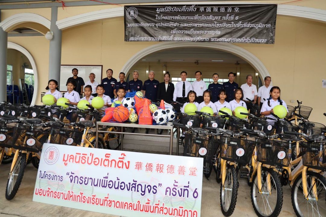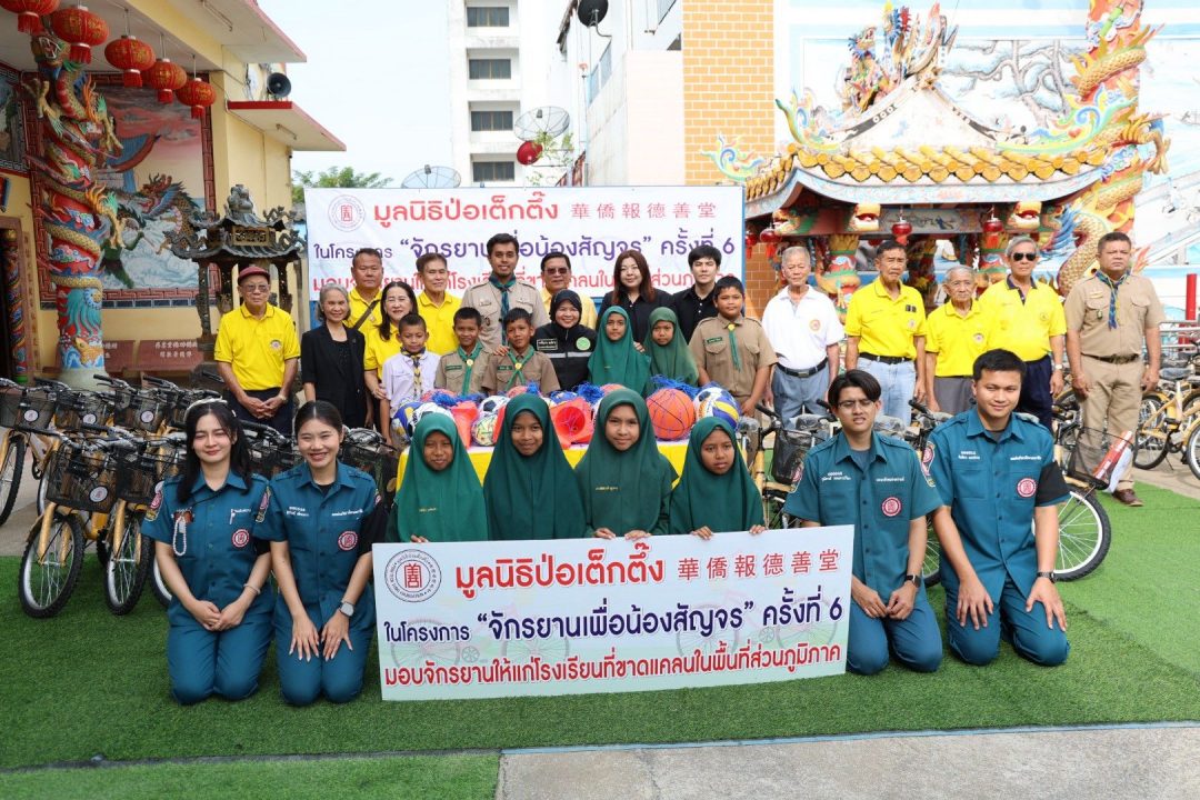 มูลนิธิป่อเต็กตึ๊ง โดย นายวิเชียร เตชะไพบูลย์ ห่วงใยนักเรียนในพื้นที่ชนบทภาคกลางและภาคใต้ มอบหมายให้ คณะกรรมการ และผู้ช่วยกรรมการมูลนิธิฯ นำโดย นายจารุรัตน์ คุณัตถานนท์ กรรมการและเหรัญญิก นายสุรพงศ์ เสรฐภักดี กรรมการและรองเหรัญญิก นายชาญกิจ วิทยาวรากรณ์ กรรมการ นายชูเดช เตชะไพบูลย์ ผู้ช่วยกรรมการ นำทีมฝ่ายสาธารณภัย และฝ่ายสังคมสงเคราะห์ ลงพื้นที่ภาคกลางและภาคใต้ มอบรถจักรยานพร้อมอุปกรณ์กีฬาและค่าพาหนะให้แก่โรงเรียนชนบทที่ขาดแคลนภาคกลางและภาคใต้ ในโครงการ “จักรยานเพื่อน้องสัญจร” ครั้งที่ 6 รวม 20 จังหวัด 100 โรงเรียน