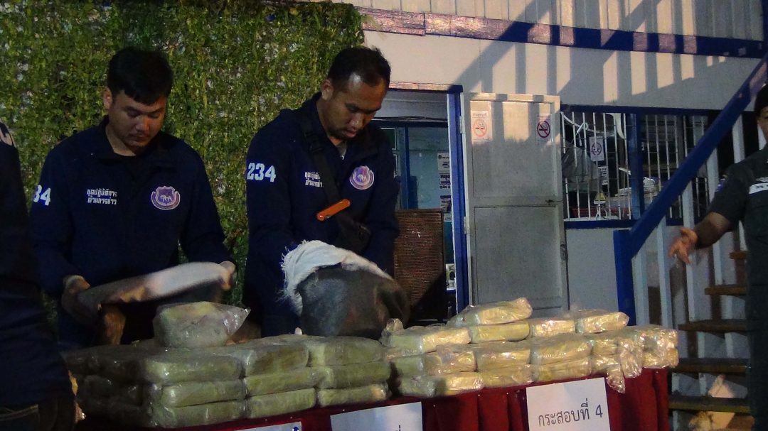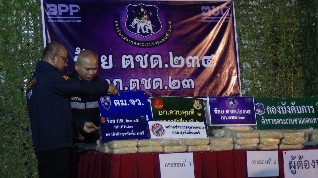 จนกระทั่งเวลา 21.30 น. น. (19 ม.ค.69) ชุดสืบสวนได้ทราบข่าวว่า ขบวนการดังกล่าว อาจรู้ว่ามีเจ้าหน้าที่เข้าจุดเฝ้าระวังในพื้นที่ จึงได้โยกจุดลำเลียงยาเสพติดเป็นพื้นที่ บ้านปากกะหลาง ต.สองคอน อ.โพธิ์ชัย จ.อุบลราชธานี ชุดปฏิบัติการด้านการข่าว ร้อย ตชด.234 จึงประสานร่วมกับกับ ชุดปฏิบัติการด้านการข่าว ร้อย ตชด. 227 และหน่วยข้างเคียงในพื้นที่ เพื่อร่วมบูรณาการวางแผนเข้าตรวจสอบ และวางกำลังเข้าซุ่มจุดดังกล่าว เมื่อถึงเวลา 00.30 น. (20 ม.ค.69 ) เจ้าหน้าที่พบขบวนลำเลียงยาเสพติดเดินแบกสิ่งของต้องสงสัยลักษณะเดินเป็นขบวน บริเวณใกล้กับที่เจ้าหน้าที่เข้าจุดซุ่มอยู่ จึงได้แสดงตัวเข้าตรวจสอบ กลุ่มบุคคลดังกล่าวจึงได้ทิ้งสิ่งของที่ตนแบกอยู่แล้ววิ่งหลบหนี เจ้าหน้าที่ได้ติดตามควบคุมตัวได้ 2 คน ส่วนผู้ต้องสงสัยรายอื่นอาศัยความมืดและความชานาญพื้นที่หลบหนีไปได้