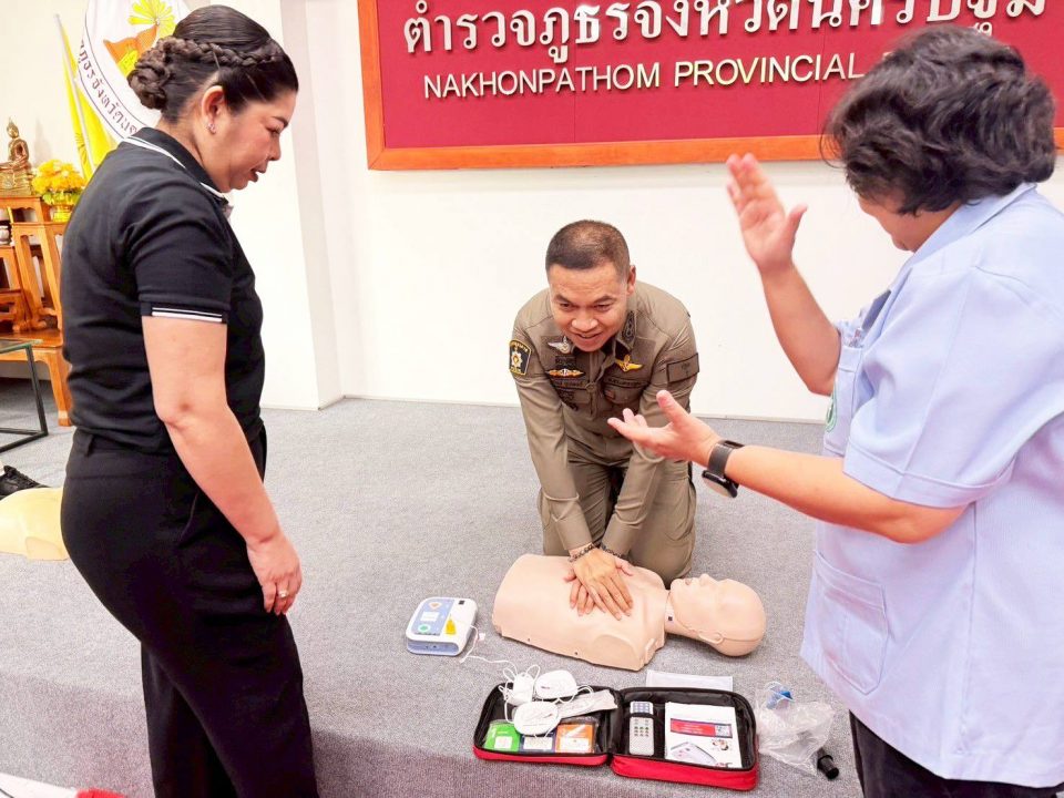 พล.ต.ต.พิทักษ์ อุปพงษ์ ผบก.ภ.จว.นครปฐม กล่าวว่า ในการดำเนินโครงการครั้งนี้มีวัตถุประสงค์ เพื่อเสริมสร้างความรู้ ความเข้าใจ และทักษะด้านการปฐมพยาบาล และการช่วยฟื้นคืนชีพขั้นพื้นฐานให้กับผู้เข้าร่วมได้รับทักษะที่สำคัญในการช่วยชีวิตขั้นพื้นฐาน (Basic Life Support – BLS) ให้แก่ข้าราชการตำรวจ เพื่อให้มีความพร้อมในการช่วยเหลือผู้ประสบเหตุฉุกเฉินและผู้ได้รับบาดเจ็บ สามารถนำความรู้ไปใช้ในการปฏิบัติหน้าที่ได้อย่างถูกต้อง ทันท่วงที และมีประสิทธิภาพ อาทิ การปฐมพยาบาลเบื้องต้น การทำ CPR การใช้เครื่องกระตุกหัวใจไฟฟ้าอัตโนมัติ (AED) การเอาสิ่งแปลกปลอมที่อุดตันออกจากทางเดินหายใจซึ่งเป็นความรู้ที่สามารถช่วยชีวิตผู้ประสบเหตุฉุกเฉินได้อย่างทันท่วงที โดยมี อาจารย์จุฑารัตน์ ผู้พิทักษ์กุล ผู้ช่วยคณบดีด้านบริหาร 9 และคณะพยาบาลศาสตร์ มหาวิทยาลัยคริสเตียน (วิทยากรบรรยาย) ณ บริเวณห้องประชุม ชั้น 3 ตำรวจภูธรจังหวัดนครปฐม ตำบล ถนนขาด อำเภอเมืองนครปฐม จังหวัดนครปฐม