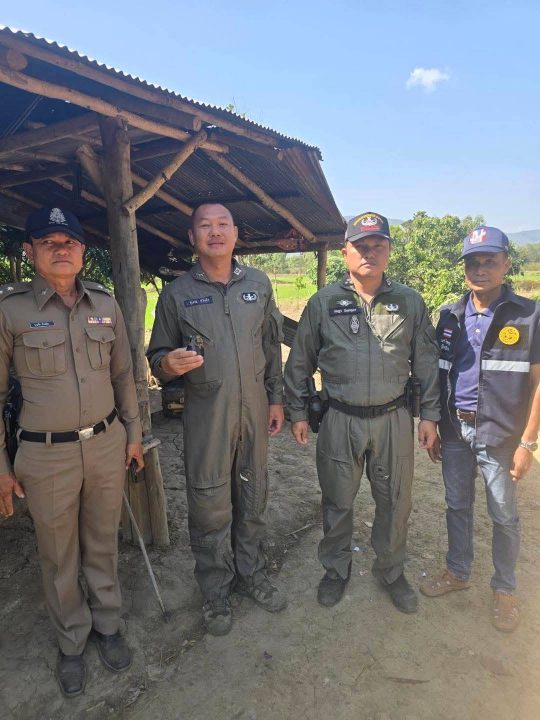 ตำรวจชุดเก็บกู้และตรวจพิสูจน์วัตถุระเบิด ตำรวจภูธรจังหวัดพะเยา นำโดย ร.ต.อ.เจษฎา ชำนาญยา รองสารวัตร กองกำกับการสืบสวนฯ หัวหน้าชุด EOD พร้อมกำลังเจ้าหน้าที่ เข้าตรวจสอบกรณีพบวัตถุต้องสงสัยคล้ายวัตถุระเบิด ภายในกระท่อมไม่มีเลขที่ หมู่ 8 ตำบลห้วยแก้ว อำเภอภูกามยาว จังหวัดพะเยา