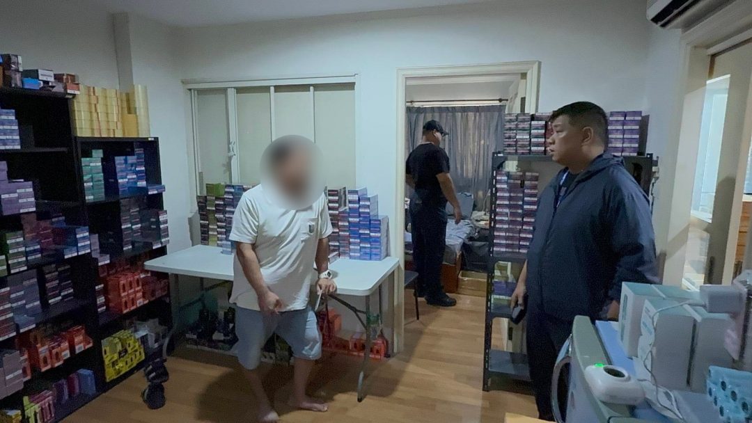 จากการตรวจยึดของกลาง พบเครื่องบุหรี่ IQOS จำนวน 16 เครื่อง ตัวบุหรี่ IQOS Tera กว่า 183,800 ตัว บุหรี่ไฟฟ้าชนิดพร้อมสูบ 798 เครื่อง เครื่องบุหรี่ไฟฟ้าอีก 202 เครื่อง หัวน้ำยาบุหรี่ไฟฟ้า 1,704 หัว พร้อมอุปกรณ์แพ็กและจัดส่งสินค้า รวมถึงรถยนต์ยี่ห้อ Mitsubishi Pajero สีเทา ใช้เป็นพาหนะกระจายสินค้า รวมมูลค่ากว่า 3 ล้านบาท