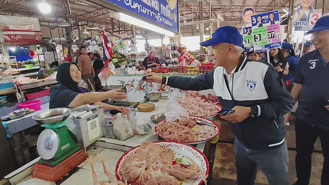 และได้ลงพบปะประชาชนและแม่ค้า พ่อค้า ในตลาดสดหลังจากนั้นได้ขึ้นรถแห่ไปตามตลาดย่านอำเภอตะกั่วป่า นโยบายของพรรคเช่นคนละครึ่งพลัส ที่จะดำเนินการต่อ หากพรรคเป็นแกนนำในการจัดตั้งรัฐบาล ตาม พูดแล้วทำ พลัส” มั่นใจปักธงพื้นที่ภาคใต้ได้ตามเป้า เน้นแก้ปัญหาเศรษฐกิจ ปากท้อง และดันราคาสินค้าเกษตร หนุนการท่องเที่ยวในจังหวัดพังงาและเมืองท่องเที่ยวฝั่งทะเลอันดามันพัฒนาเมืองพร้อมต้อนรับนักท่องเที่ยวทั้งชาวไทยต่างชาติให้เข้ามาเที่ยวเพื่อสร้างรายได้ให้กับพี่น้องประชาชนในพื้นที่ พร้อมขอเสียงพี่น้องประชาชนในเขต 2 ให้ช่วยลงคะแนนทั้งพรรคเบอร์ 37 และและผู้สมัคร สส.หมายเลข 3 เขต 2