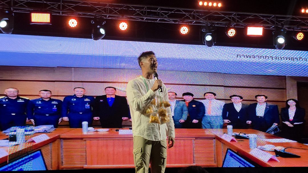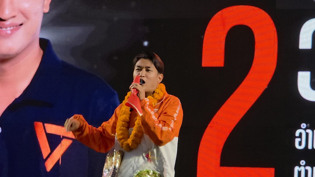 ด้านนายธนาธร จึงรุ่งเรืองกิจ ในฐานะผู้ช่วยหาเสียง (คณะก้าวหน้า) ได้ขึ้นปราศรัยโดยสรุปภาพรวมการทำงานและทิศทางในอนาคต ซึ่งนายธนาธรได้สรุปการทำงานของพรรคนับตั้งแต่จุดเริ่มต้น (อนาคตใหม่-ก้าวไกล-ประชาชน) ว่าได้สร้างการเปลี่ยนแปลงทางความคิดและการเมืองไทยเป็นอย่างมาด โดยเน้นว่าความตั้งใจตลอดยังคงเหมือนเดิมคือการสร้างการเมืองที่โปร่งใสและตรวจสอบได้ มีการย้ำถึง “งานที่ค้างไว้ในสภา” ซึ่งรวมถึงกฎหมายสำคัญและการปฏิรูปเชิงโครงสร้างที่พรรคพยายามผลักดันมาโดยตลอด แต่ยังไม่สำเร็จเนื่องจากปัจจัยทางการเมือง ขอโอกาสประชาชนไว้วางใจเลือก สส. จากพรรคประชาชนเข้าไป “ปิดจ๊อบ” หรือจบงานที่ค้างไว้ เพื่อให้การเปลี่ยนแปลงเกิดขึ้นจริงตามความคาดหวังของประชาชน