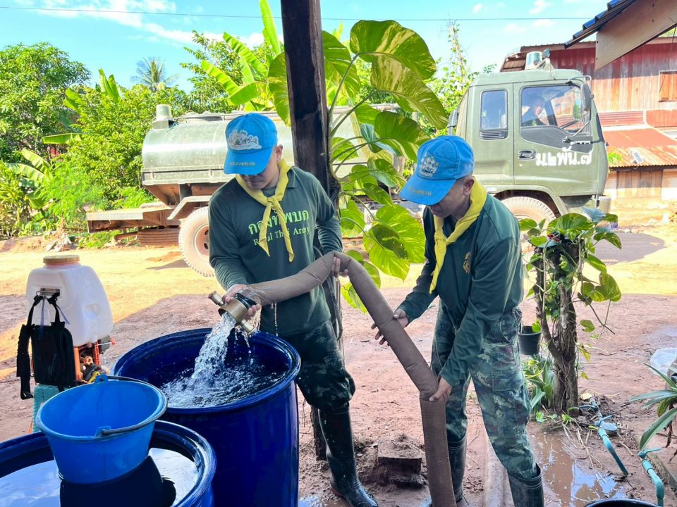 กองพันทหารม้าที่ 7 กรมทหารม้าที่ 2 กองพลทหารม้าที่ 1 จัดกำลังพลจิตอาสาช่วยเหลือประชาชน โดยแจกจ่ายน้ำ ทำการเติมน้ำใส่ภาชนะสำรองให้กับบ้านเรือนประชาชนเพื่อใช้อุปโภคและบริโภคภายในครัวเรือน เพื่อบรรเทาความเดือดร้อนให้กับพี่น้องประชาชนในพื้นที่ประสบปัญหาภัยแล้งในพื้นที่ จำนวน 8,000 ลิตร ณ พื้นที่ บ้านหัวนา หมู่ที่ 7 ตำบลแสนตอ อำเภอน้ำปาด จังหวัดอุตรดิตถ์